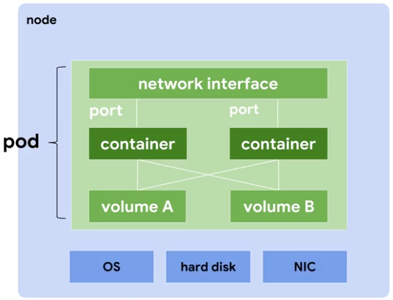 포드는 노드 자체와 분리된 네트워크 및 저장소를 공유하는 컨테이너 그룹에서 볼 때 일종의 VM과 유사한 역할을 한다.