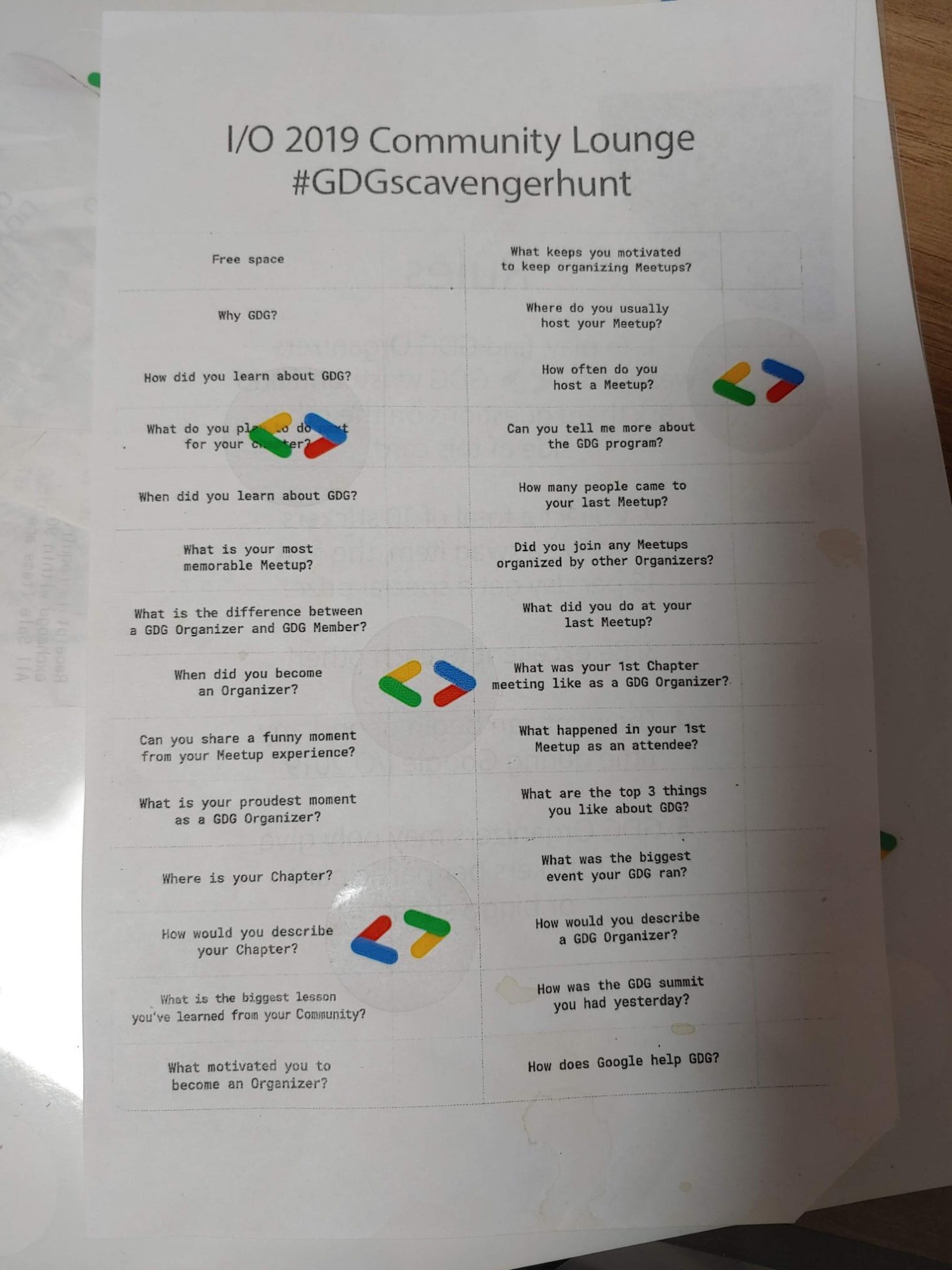 GDG 스캐빈저 헌트라는 이벤트가 있었다. 가볍게 즐길 수 있는 이벤트로 있었는데, 내가 GDG 오거나이저 였기 때문에, 이 스티커를 배부할 수 있는 권한(?)을 부여받았다.