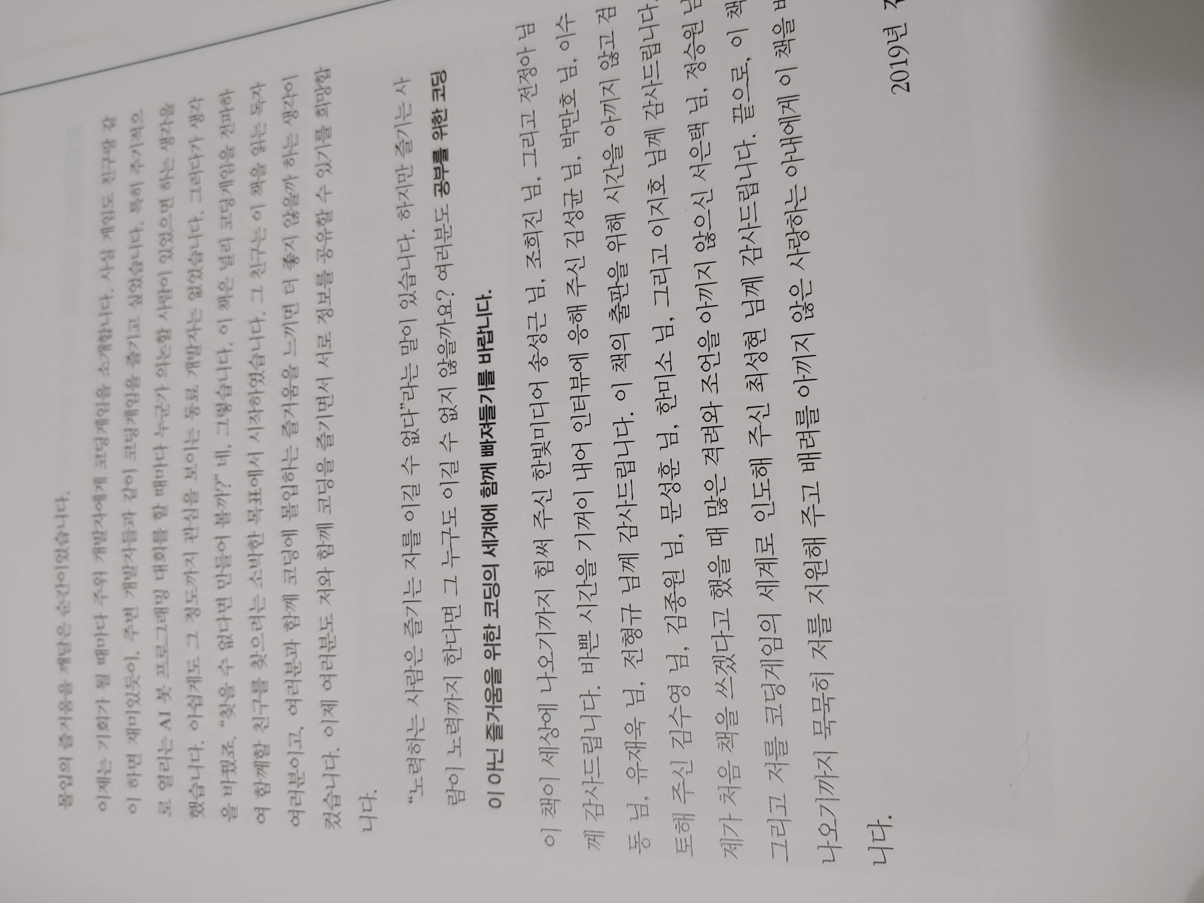 중요한 한마디가 있어서 발췌를 했다. "공부를 위한 코딩이 아닌 즐거움을 위한 코딩의 세계에 함께 빠져들기를 바랍니다."
