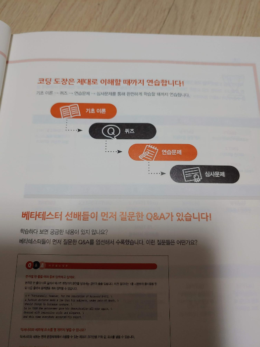 머릿만 부근에 다양한 설명이 있지만, 위 처럼 [기초이론]-[퀴즈]-[연습문제]-[심사문제]로 이어지는 학습의 4단계 스텝이 이 책의 핵심 구성이라고 말할 수 있다.