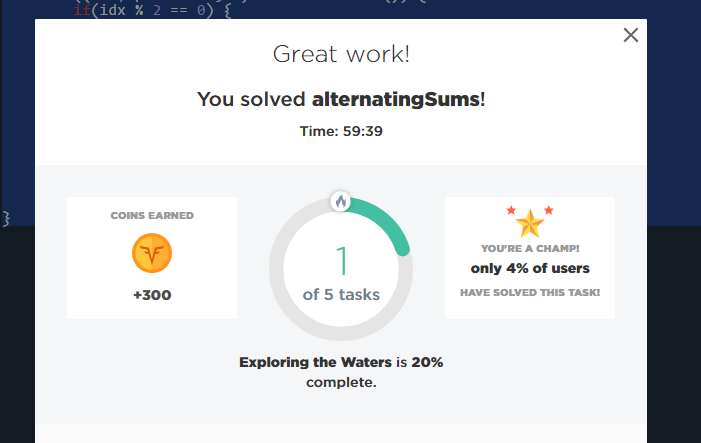 그래서 나머지 연산으로 2를 하여 홀수와 짝수를 가려내고, 홀수팀과 짝수팀의 수를 각각 합산하고, 그 결과를 MutableList로 리턴하면 끝이다. 예상했던대로 결과는 문제가 없었으며, 문제는 바로 해결되었다.