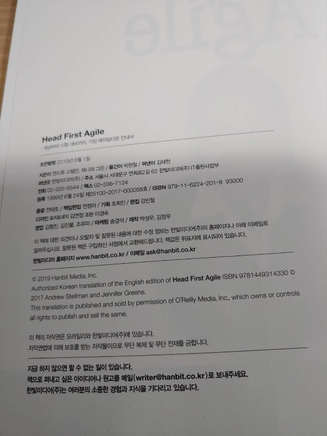 사실 헤드퍼스트 시리즈가 아직까지 신간이 잘 나오고 있다는 점을 모르고 있었는데, 이 책의 초판발행이 2019년 8월 1일이다. 물론 원본은 2017년의 책이고 그것을 번역한 번역서의 기준으로 2019년이지만, 그래도 2017년도 최신으로 느껴지기 때문이다.