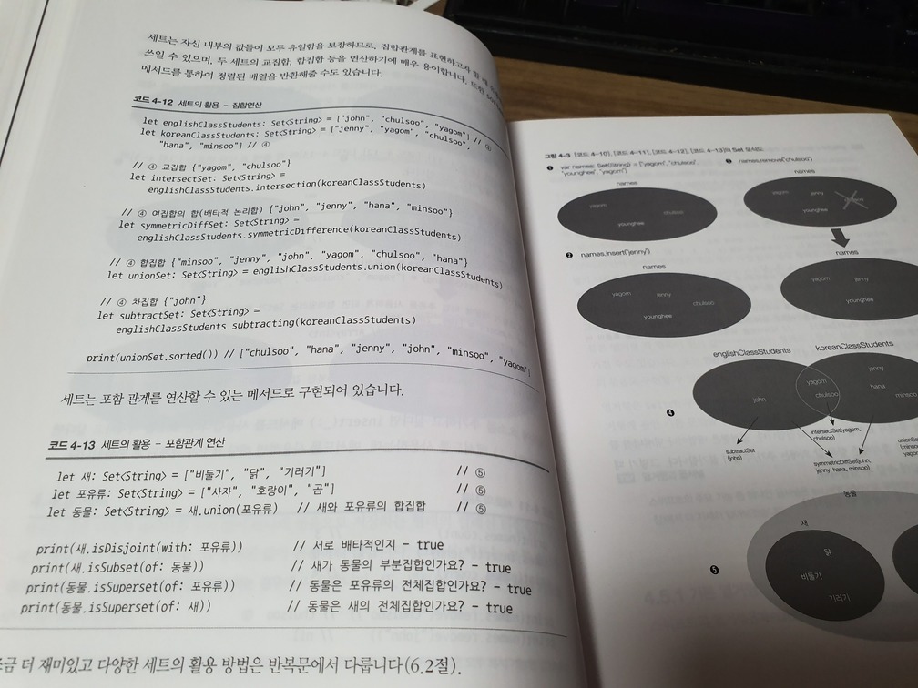 예제를 수록한 부분도 같은 느낌이다. xcode를 동작하여 코드 테스트를 진행하기는 하였으나, 거의 인터프리터 언어 테스트 하듯이 작성해도 무방하다. 하나의 프로그램을 만드는 실전예제가 아닌, 각 언어 특성을 보기 위한 테스트 코드이기 때문이다. 그래서 기본에는 매우 도움이 되는 느낌이다. 복합적이지 않기 때문에 각 연산자의 특성을 순수하게 알 수 있도록 도와주었다.