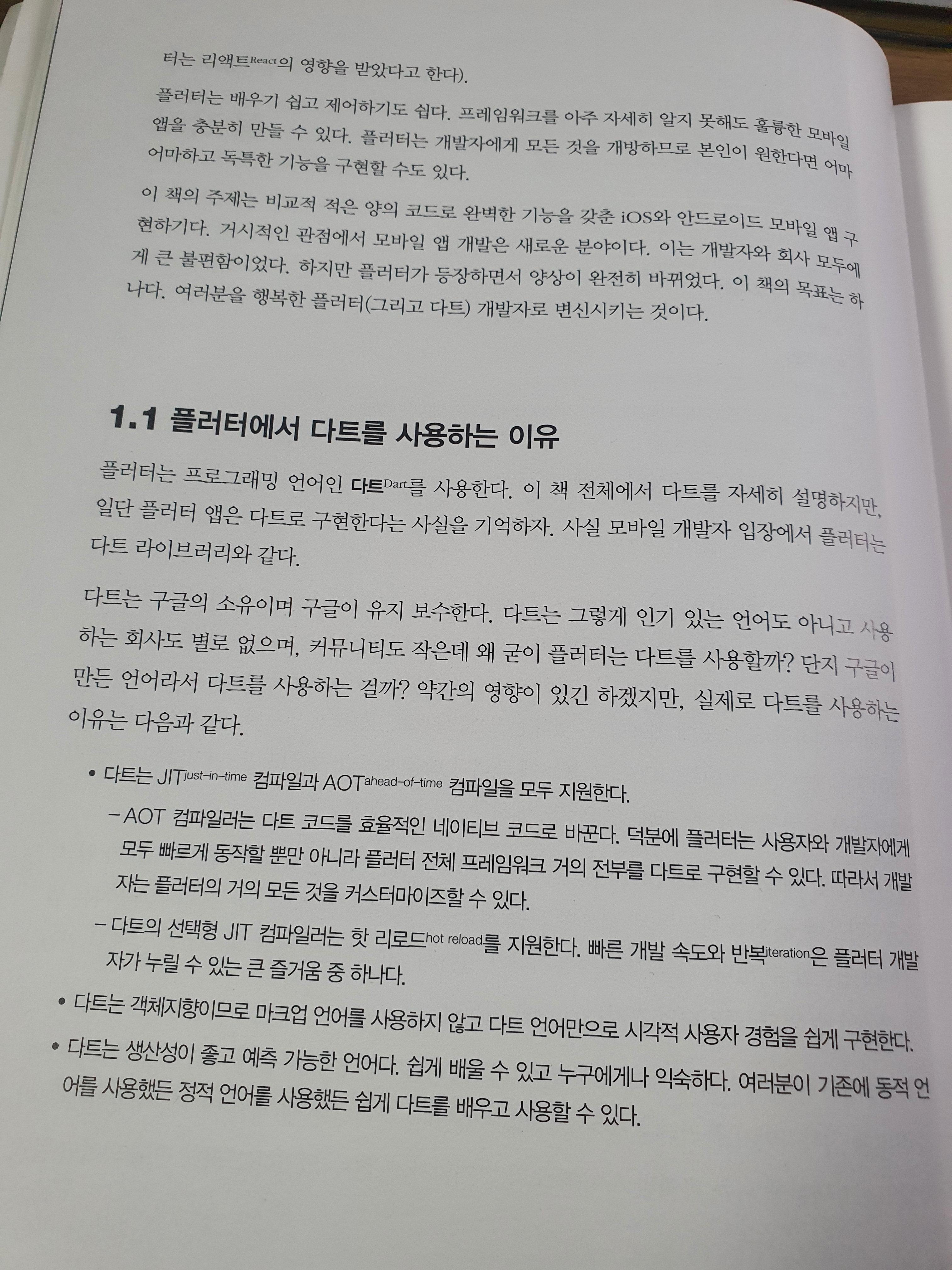 이 책은 플러터를 처음 접하는 사람에게 인상적으로 와 닿을 것 같다.