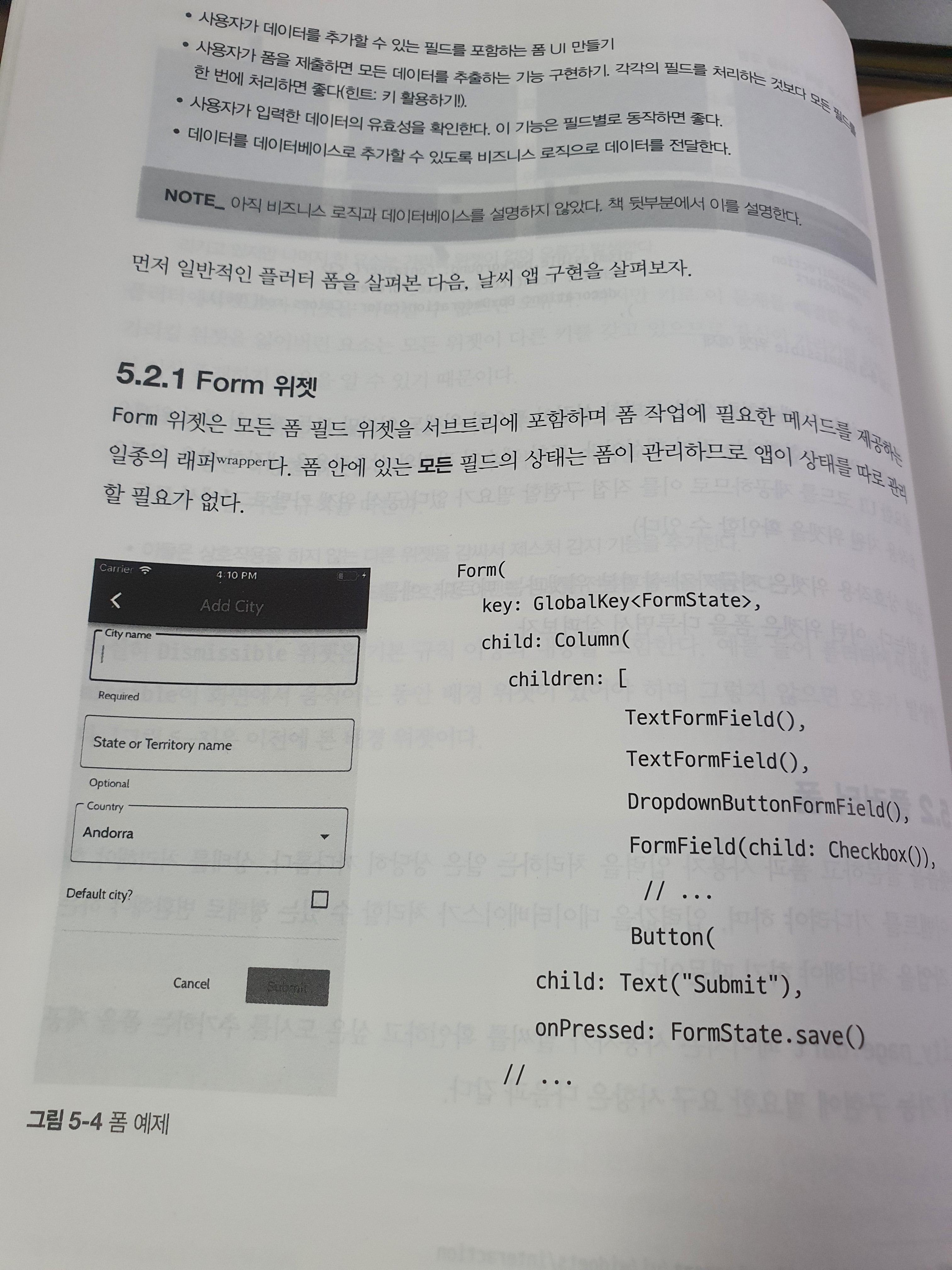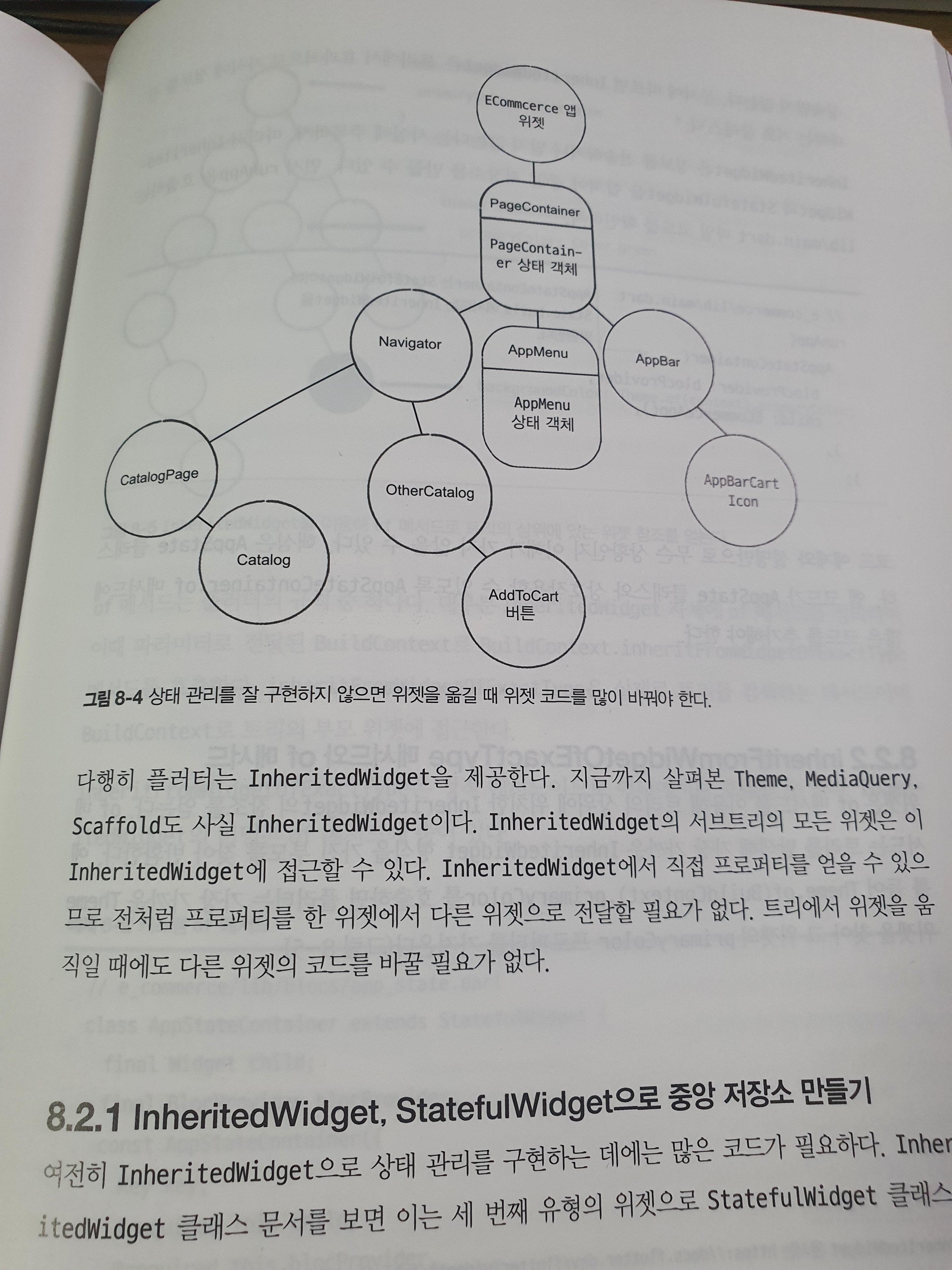 구성이 깔끔한 느낌이 아니다. 그래서 전체적으로 머리에 잘 들어오지도 않는다. 게다가 개념들을 설명하는 용어가 클래스 단위로 많이 언급했기 때문에, 더욱이나 잘 읽혀지지는 않는다. 플러터 책 한 두 권을 이미 읽고 어느정도 익숙해진 사람이 정리하는 것이 더 어울릴 것 같다.