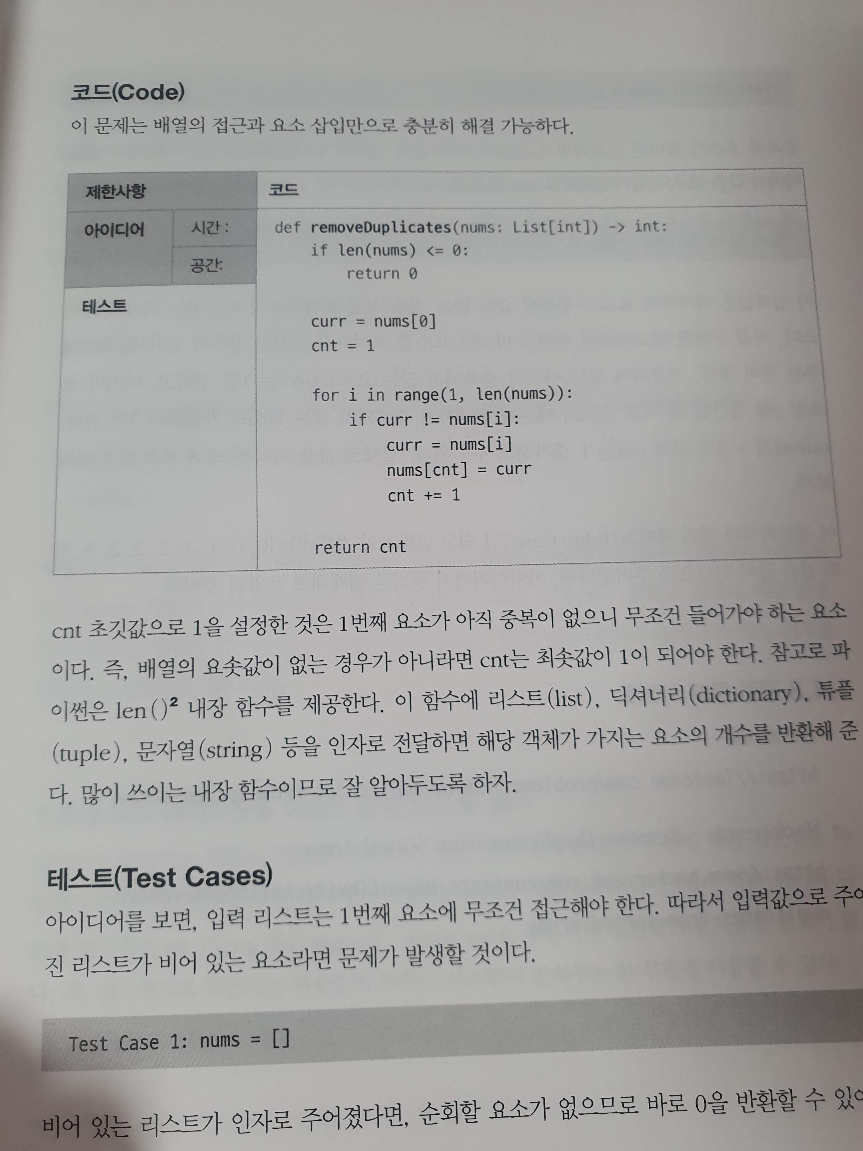 알고리즘 설계 캔버스라는 테이블은 이 책에서 가장 핵심적인 노트를 표현하는 부분이다. 이 부분에 각각의 칸이 다른 역할을 보여주고 있는데, 이 중 테스트 칸은 별도로 기록에 사용된 것을 보지는 못했다. 그렇다면 굳이 필요한가 생각이 들고, 필요하다면 활용하는 부분도 같이 보여주어야 납득할 수 있을 것 같다.