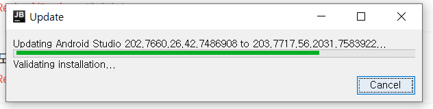 오늘도(?) 안드로이드를 공부해보기 위해 Android Studio를 켜서 진행하려고 하던 차에, Android Studio의 업데이트 건이 있다는 알림을 오른쪽 하단에서 발견했다.