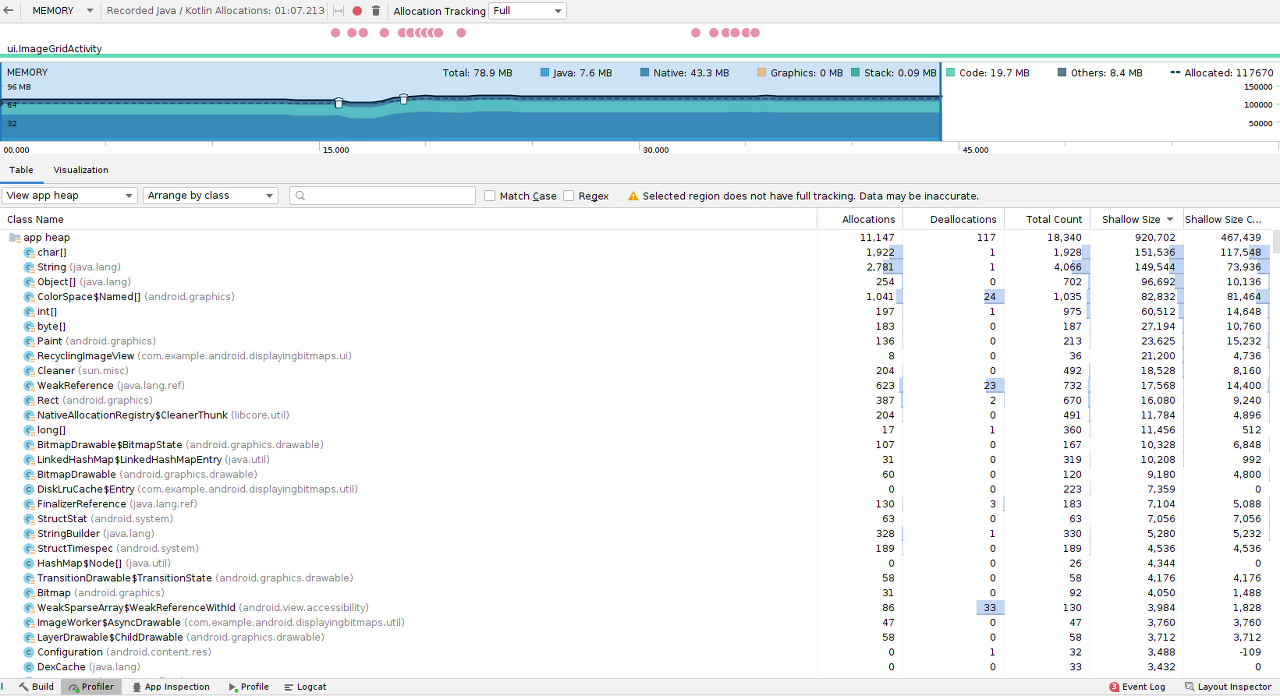 힙 덤프 캡처 및 Java, Kotlin 및 Native 메모리 할당 레코딩과 같은 다양한 레코딩 활동을 위해 메모리 프로파일러 UI를 통합했다.