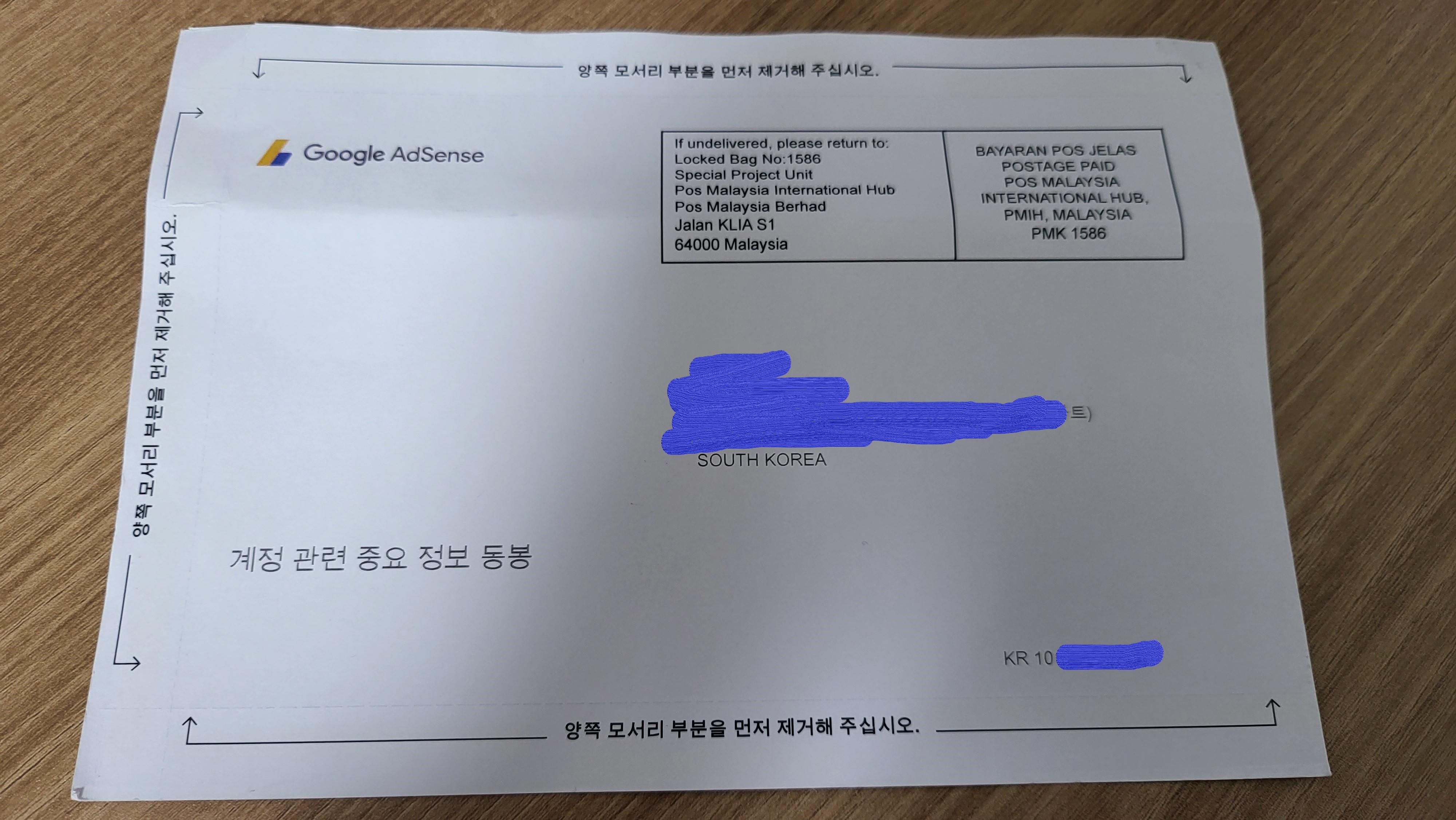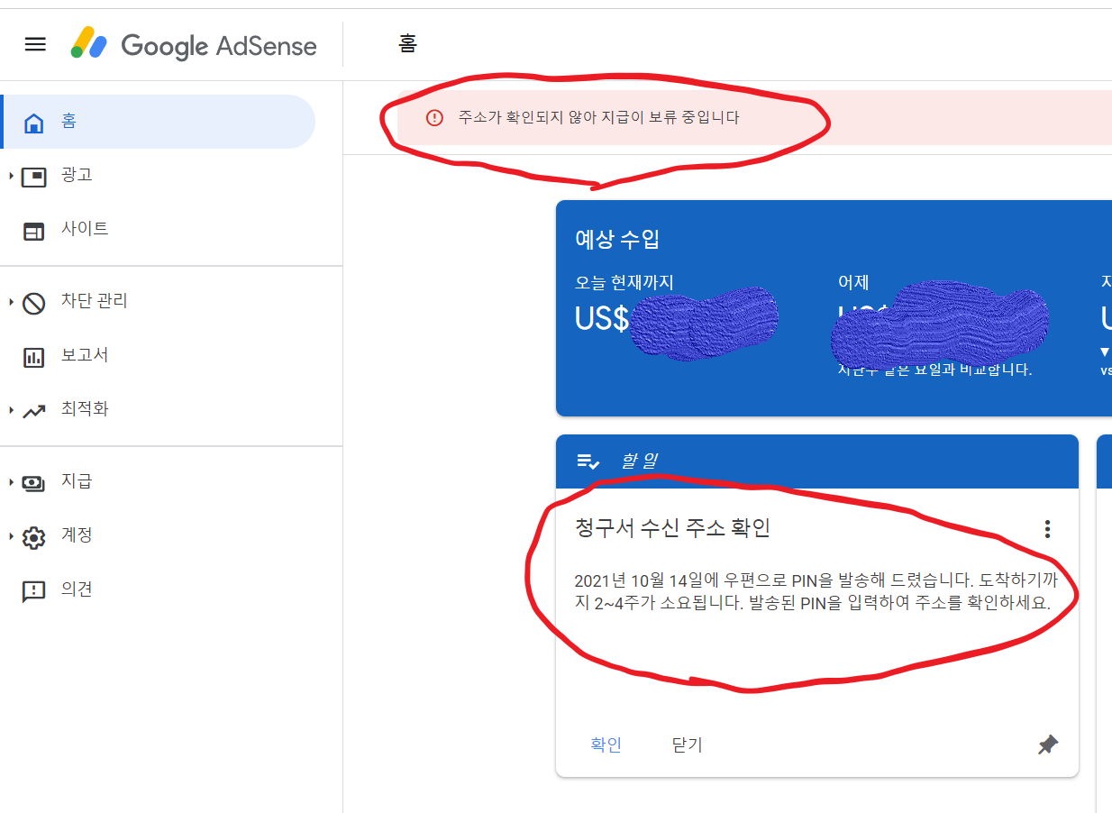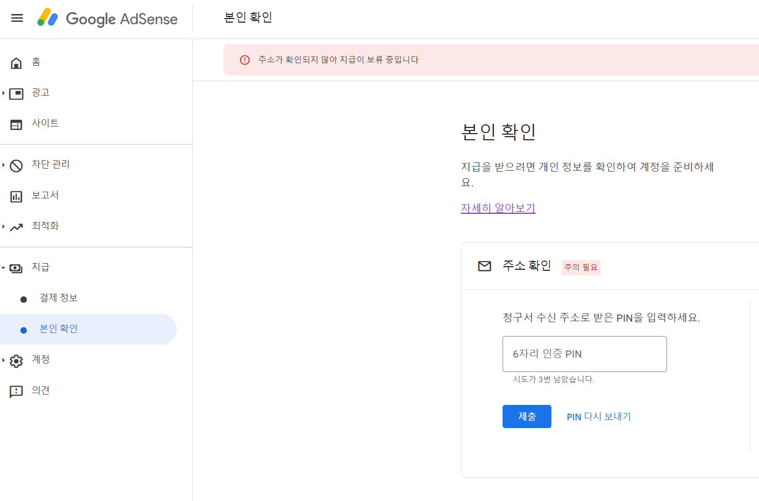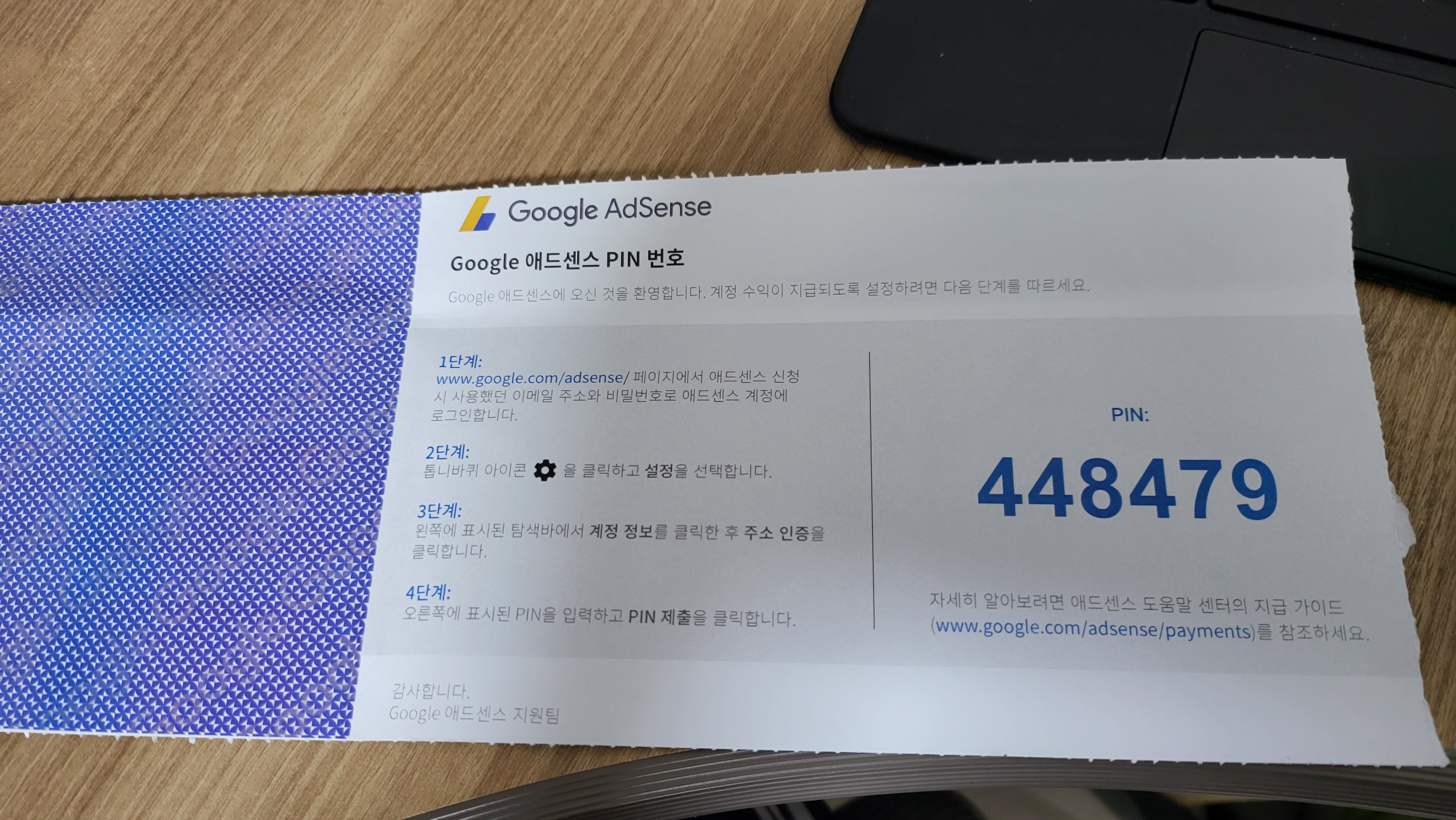 오늘은 구글의 서비스 중 하나인 애드센스의 주소확인 PIN번호 입력에 대한 부분이다.