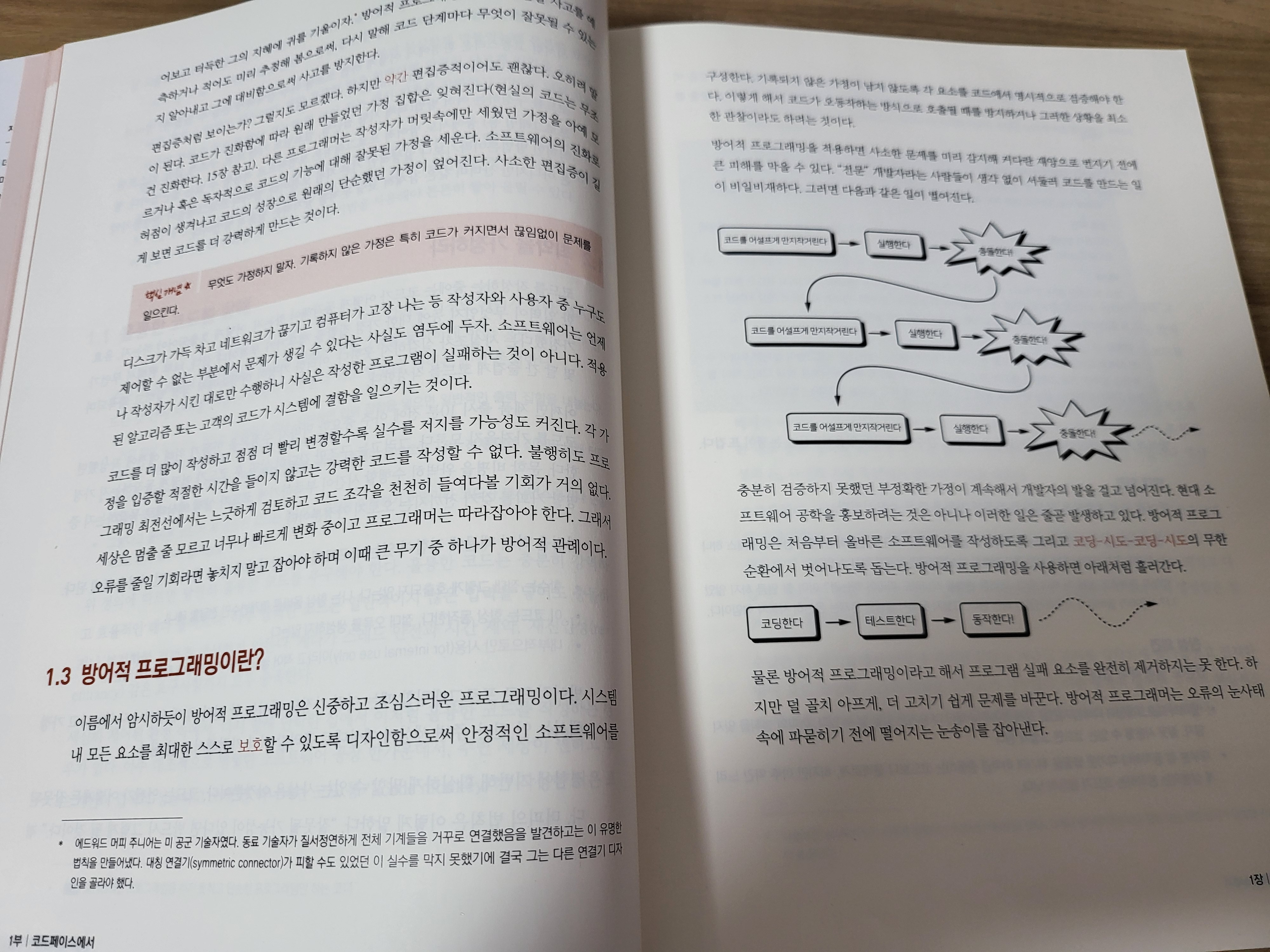 첫 장에서는 방어적 프로그래밍에 대해서 다루고 있었다. 일단 코드를 대하는 전체적인 자세부터 말하고 있다.