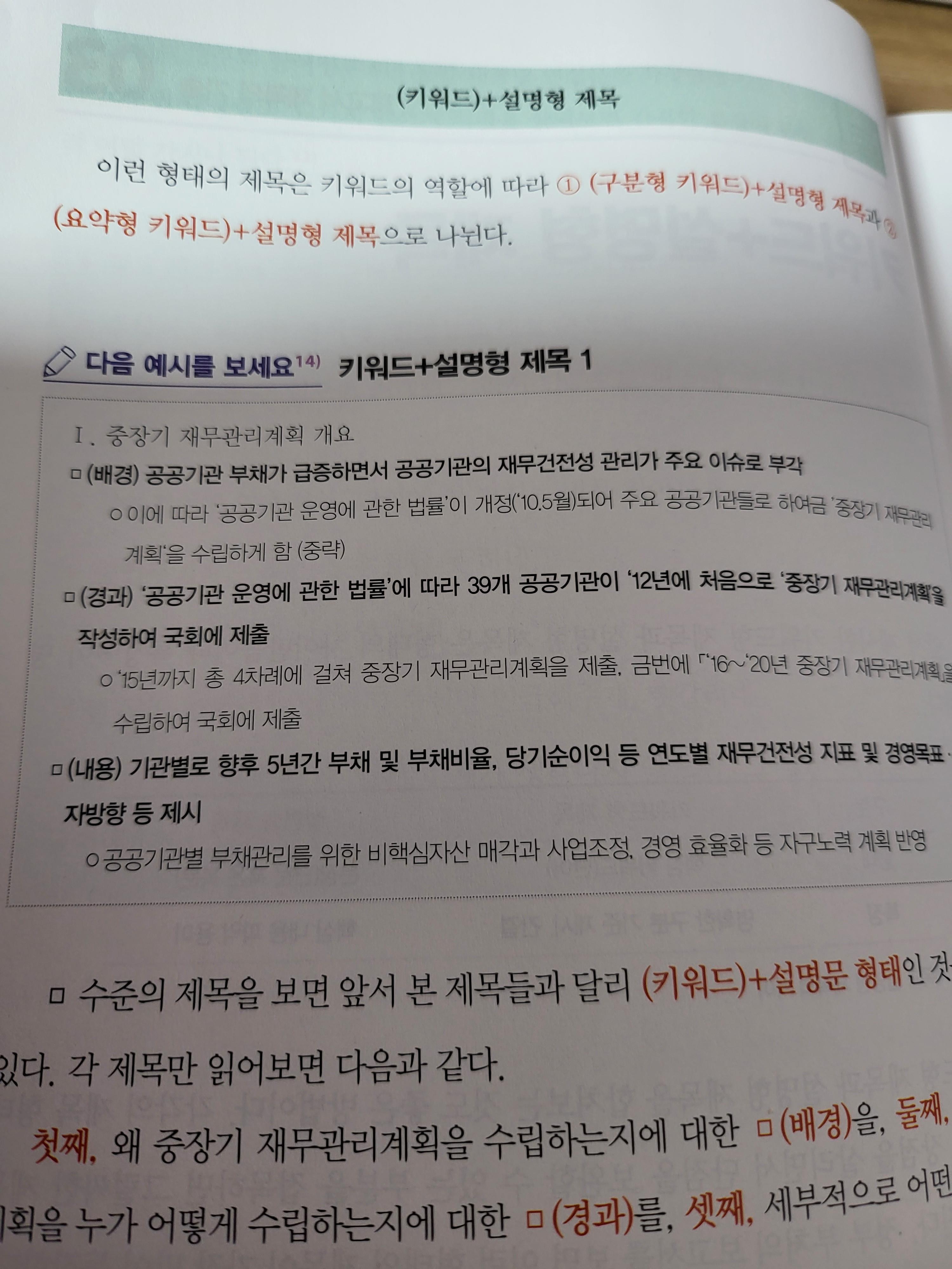 가령 키워드+설명형 제목을 쓰려고 할 때, 이 제목만으로도 전달하고자 하는 바가 잘 부각되도록 하는 점이 중요하다는 것이다. 즉, 배경은 무엇이며, 경과는 어떻게 되고 있고, 내용은 무엇을 전달하고자 하는지에 대해 알려주고 싶어하는 사람이 전달하는 내용을, 알아야 하는 사람이 잘 받을 수 있다는 것을 이렇게 보여주고 있다.