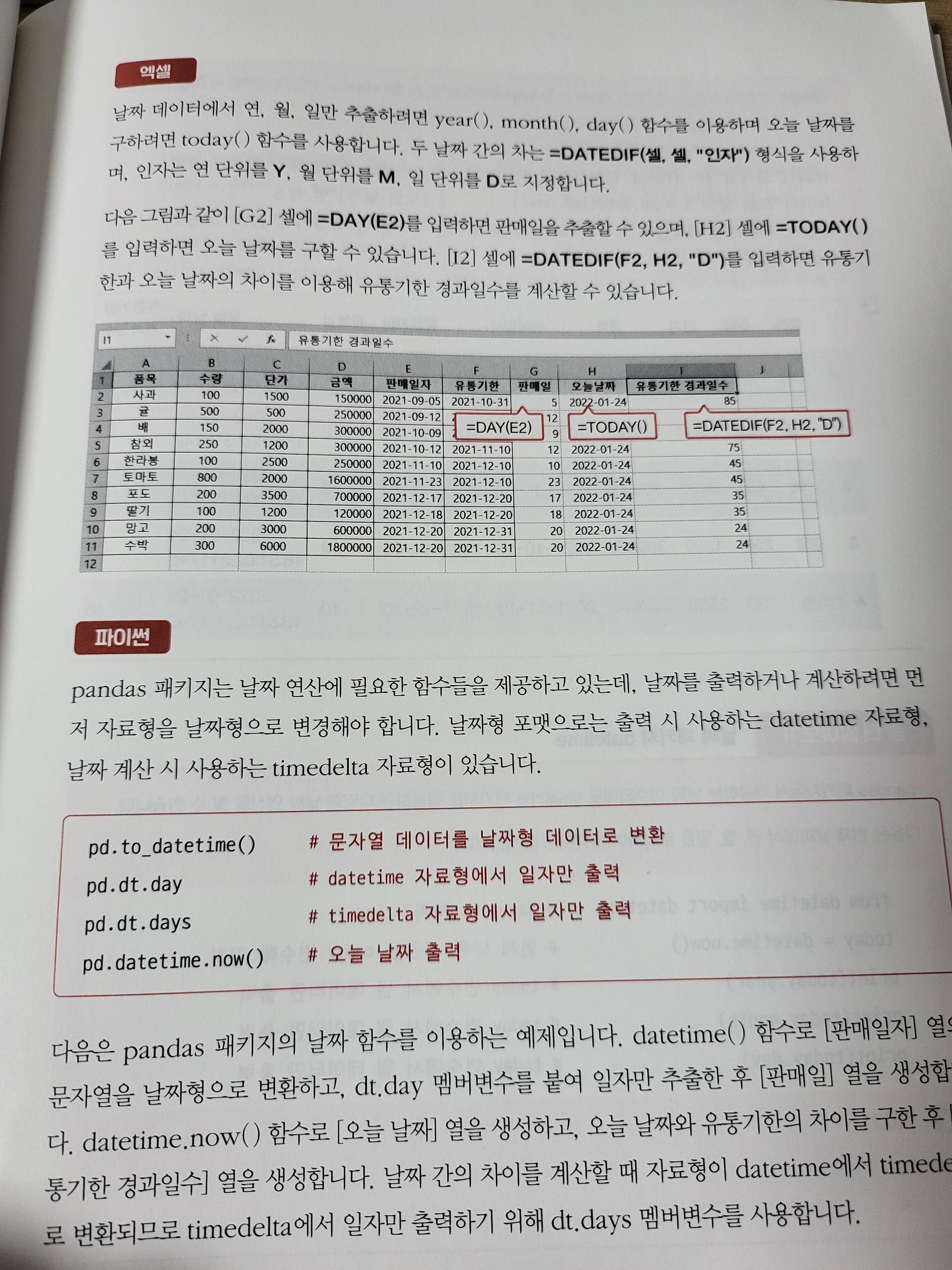 날짜 계산에 있어서도 코드 자체의 양은 엑셀이 적은 것 같지만, 그것을 구성하기 위해 마우스로 이리저리 클릭이 필요하며, 혹은 키보드의 방향키로 잦은 이동이 필수이다. 하지만 파이썬에서는 해당 내용을 어떤 컬럼에서 제어해야 하는지만 잘 인지한다면, 그런 반복적인 행위가 불필요하다고 본다.