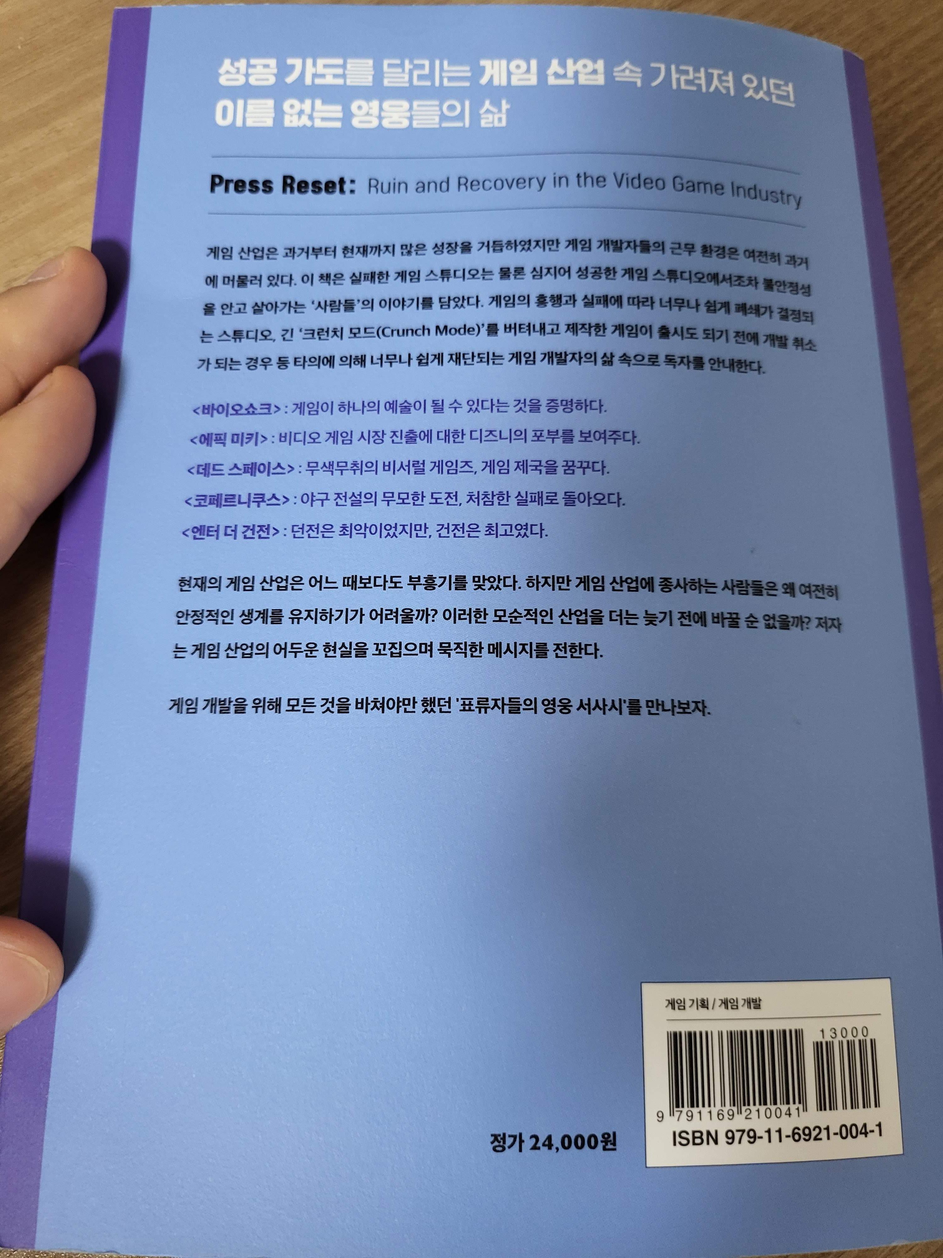 이 책의 뒷표지에서는 이 책에서 소재로 사용된 주요 게임의 타이틀을 나열하고 있다.(개인적으로는 이중에선 플레이해본 게임이 없다는 점은 아쉬웠다.) 그들의 흥망성쇠를 경험하는 시간에 항상 존재했던 것은 사람이다. 바로 그 '게임산업 종사자들은 어떻게 미래를 영위할 수 있었을까'에 초점을 맞추고 있다. 이 책에서 언급된 자들은 그렇게 영웅으로 불릴만한 네임드인 자들이 아닌 경우가 많다. 하지만, 이 책에서 언급조차 되지 않은 자들도 매우 많이 존재하는데, 그들은 어떻게 삶을 영위할 수 있을까. 그들이 없다면 게임 산업의 한켠을 리셋하고 다시 시작할 수는 있을까. 이름이 유명하지는 않아도, 한 획을 그을만큼 매우 큰 능력이 있지는 않고, 카리스마가 넘쳐나지는 않아도 그들은 모두 영웅이기에, 그들을 위해 게임 산업은 어떤 방향으로 나가야 하는지... 이 면을 이용하여 의문을 던지고 있다.