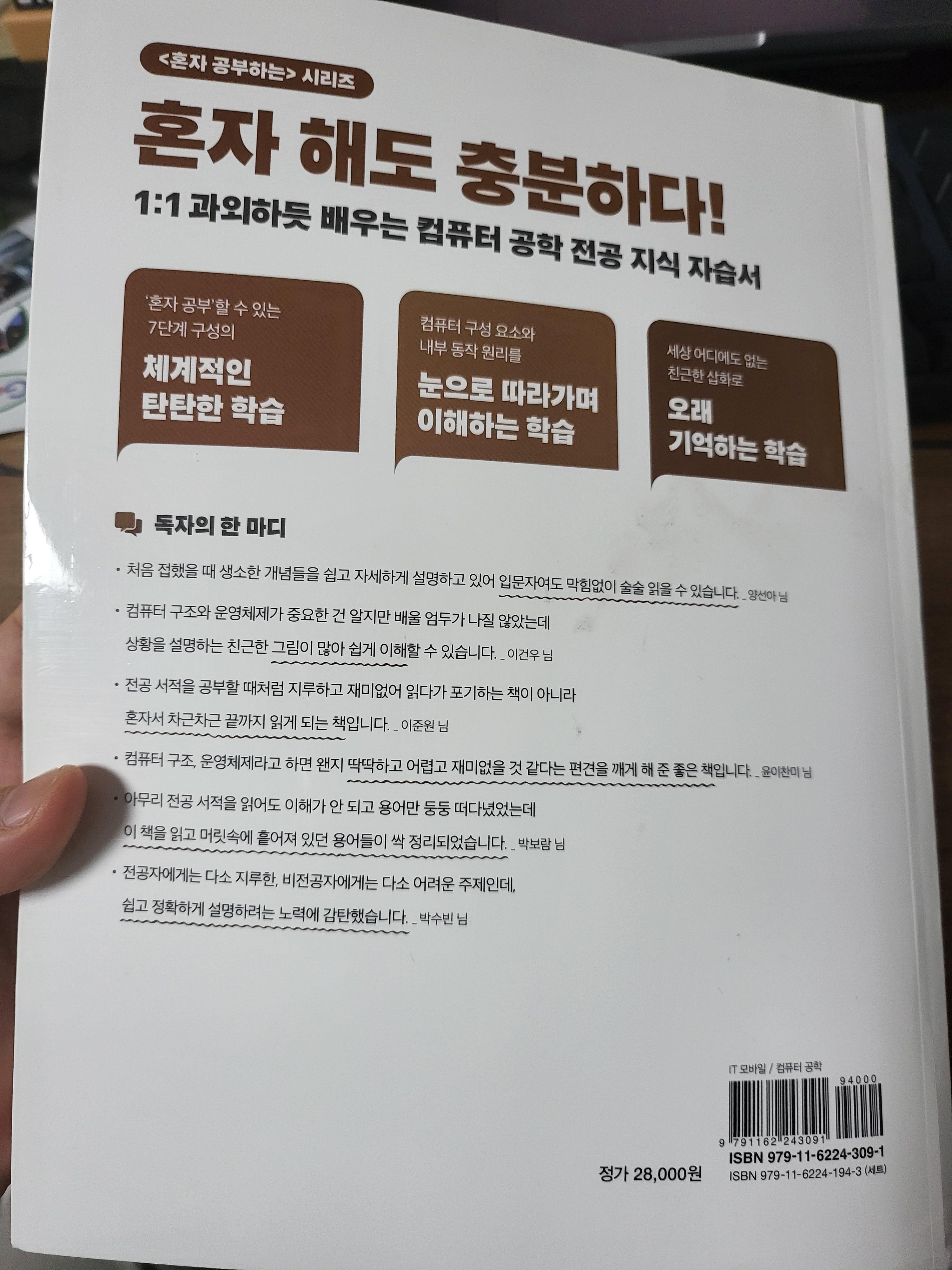 내가 받은 느낌으로는 이 책은 혼공의 뜻에 맞추어 혼자 공부해도 충분하지만, 함께 스터디할만한 동지가 있다면, 스터디의 교재로 쓰기에도 너무 좋다는 생각이 든다.