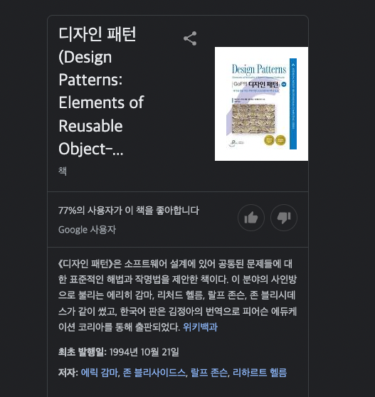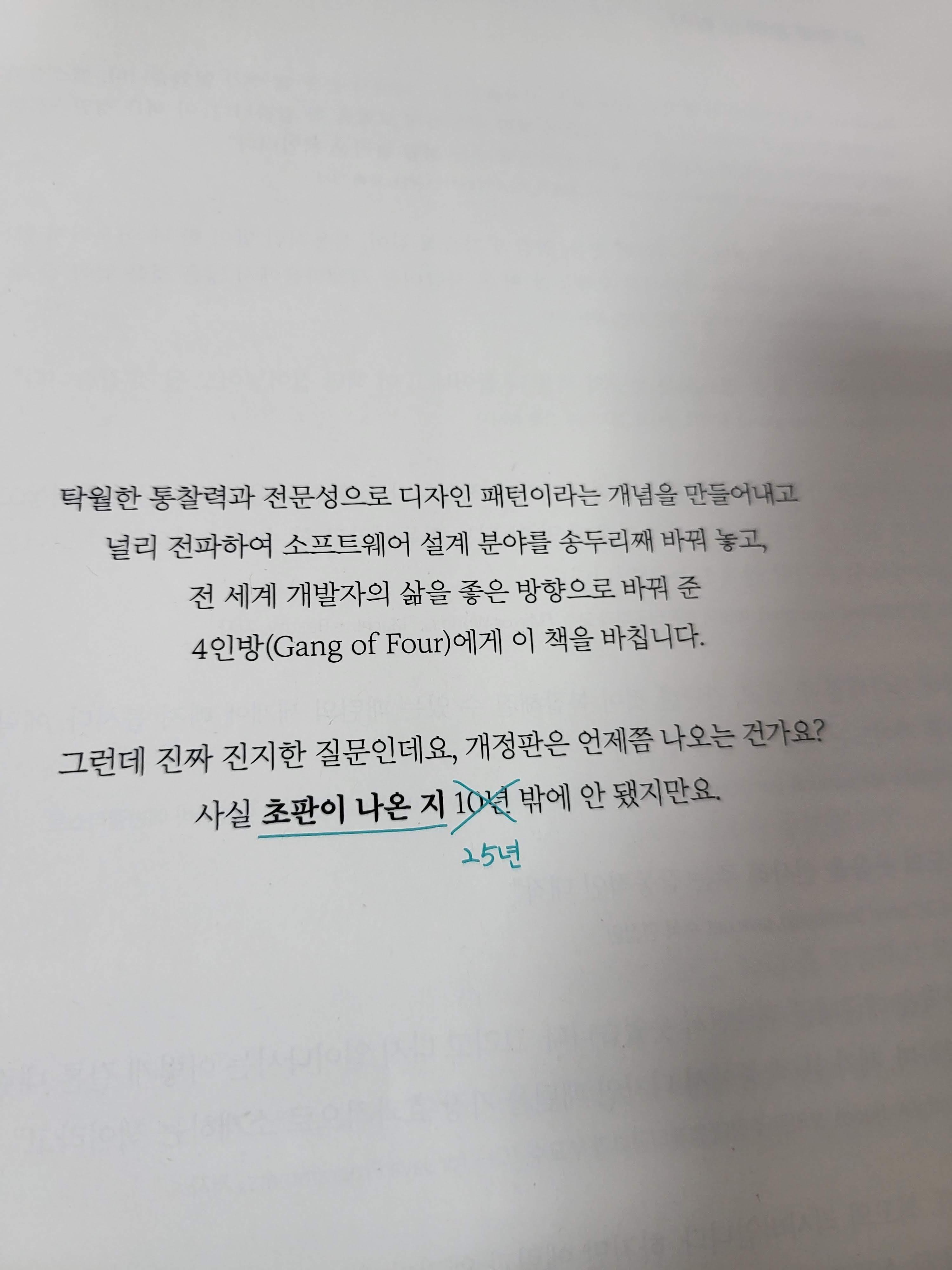 여기에 나온 것이 깨알 재미였다. 초판본에는 10년이라고 되어있었는데, 더하기 15년을 했다. 하지만 궁금하여 찾아보니 GoF의 디자인 패턴 책은 1994년에 원서가 발행되었기 때문에 현재(2022년) 기준으로는 28년이나 된 것이다. 엄청나게 시간이 많이 흘렀다.