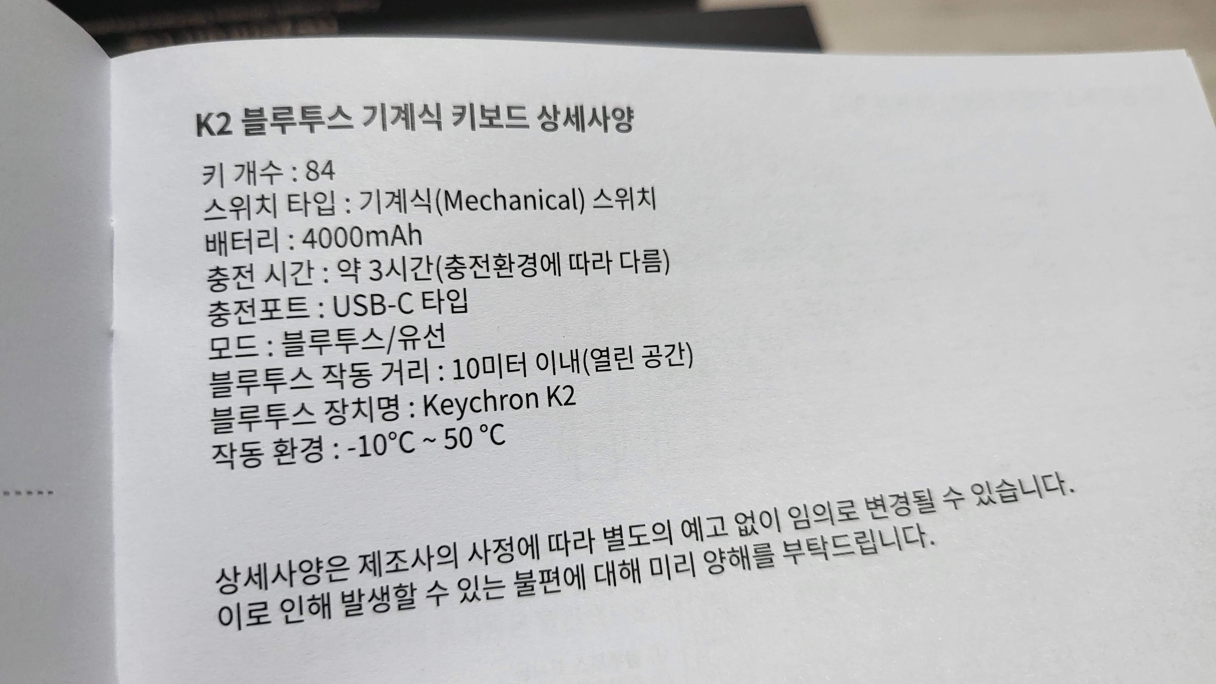 이 키보드의 주요 스펙을 간략히 정리하면 아래와 같다.