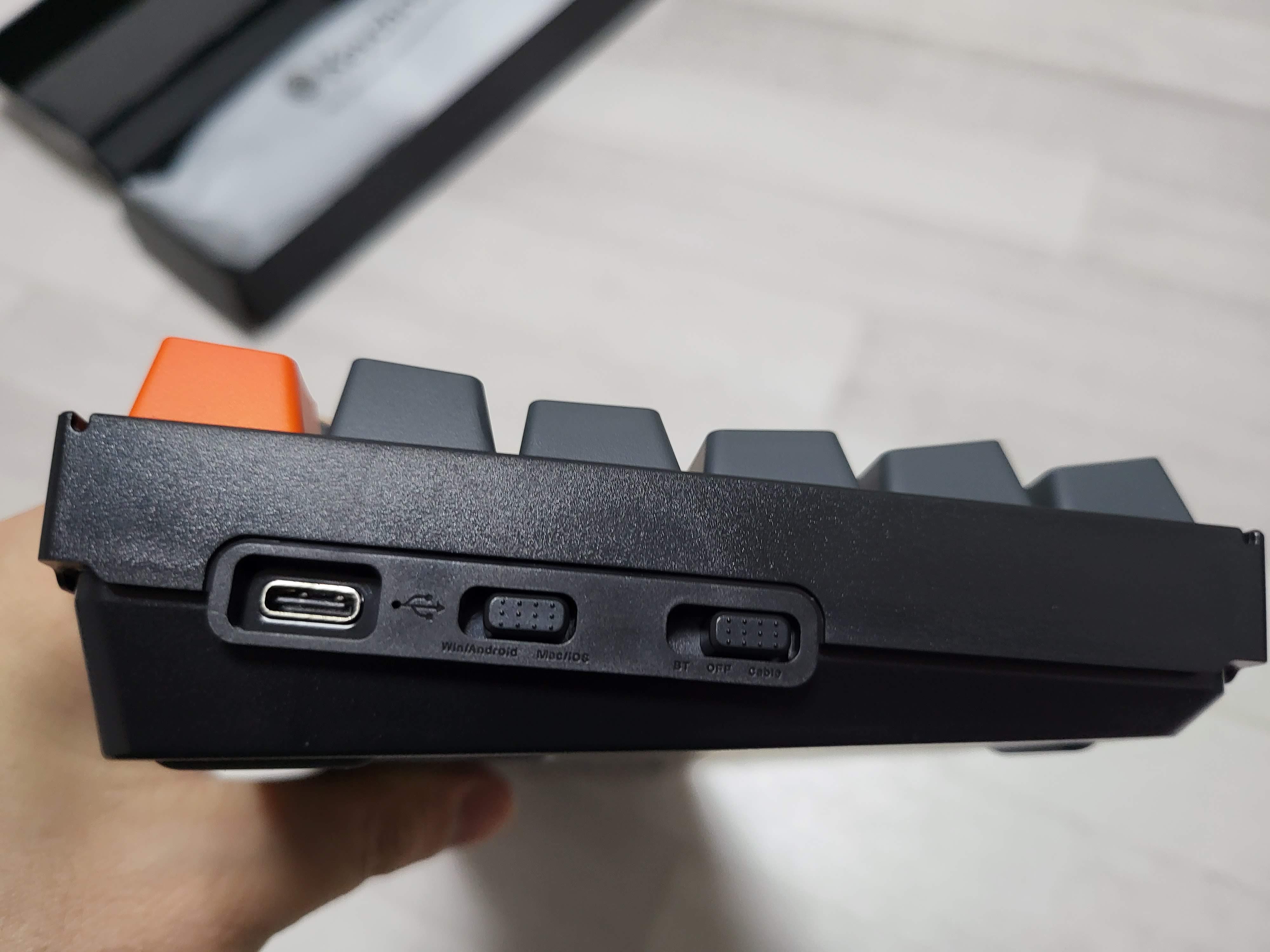완전 풀배열은 아니지만, 나름 오른쪽 숫자키패드가 있는 키보드 치고는 그리 크지 않은 박스 크기에 놀랐다.