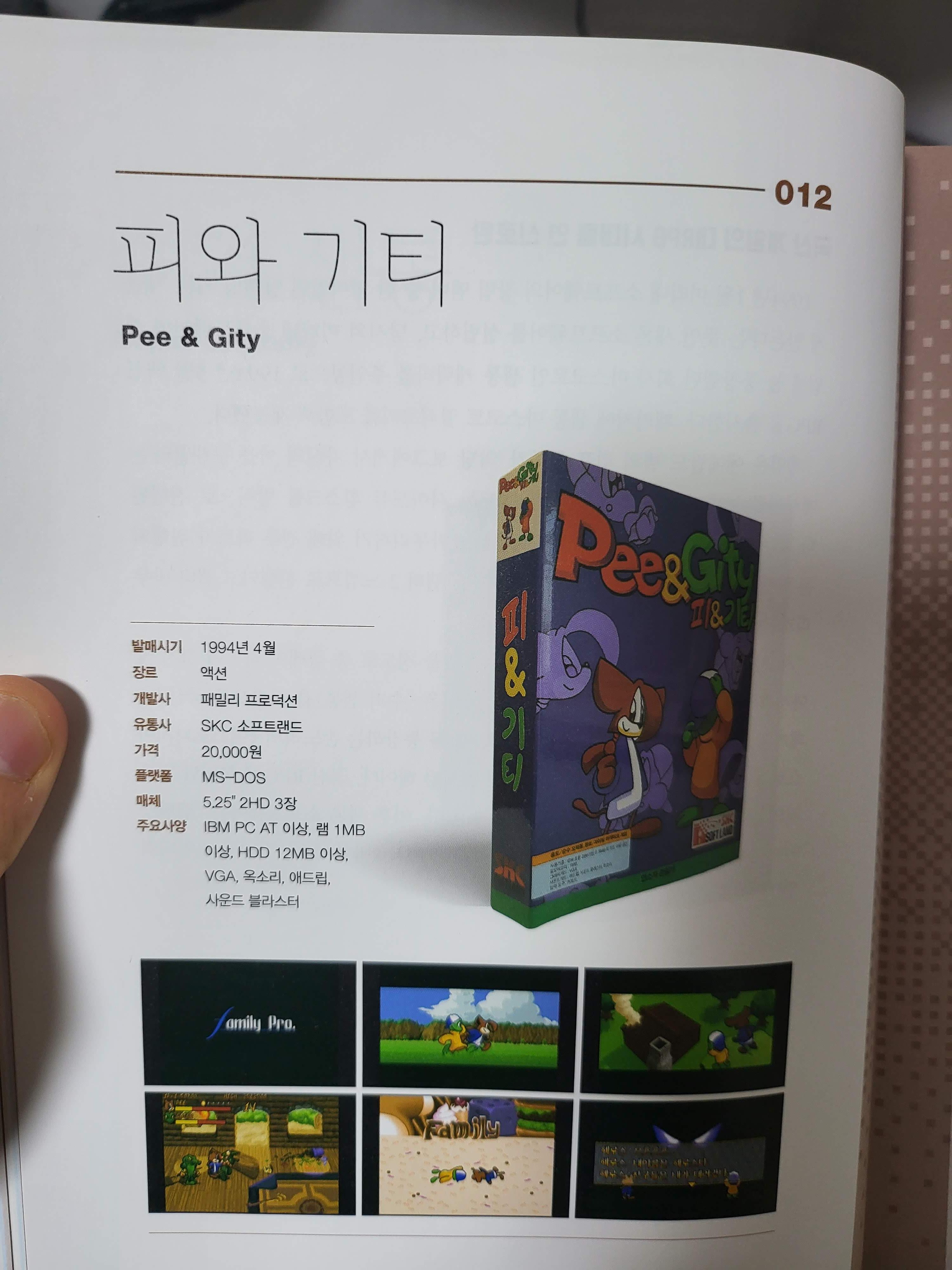 피와 기티! 이름 자체를 잊고 살았다가 이 책으로 기억난 게임이다. 기억나기론 벨트스크롤 액션게임을 좋아하던 시절이라, 이 때에도 이걸 좋아했지 않았을까 싶다. 5.25인치 2HD 플로피디스크 3장이 필요했던 게임이었구나. 그래도 HDD 20메가로 시작했던 시절이었던 것 같은데, 12MB를 차지하다니... 워낙 고퀄리티 게임이었던 것 같다.