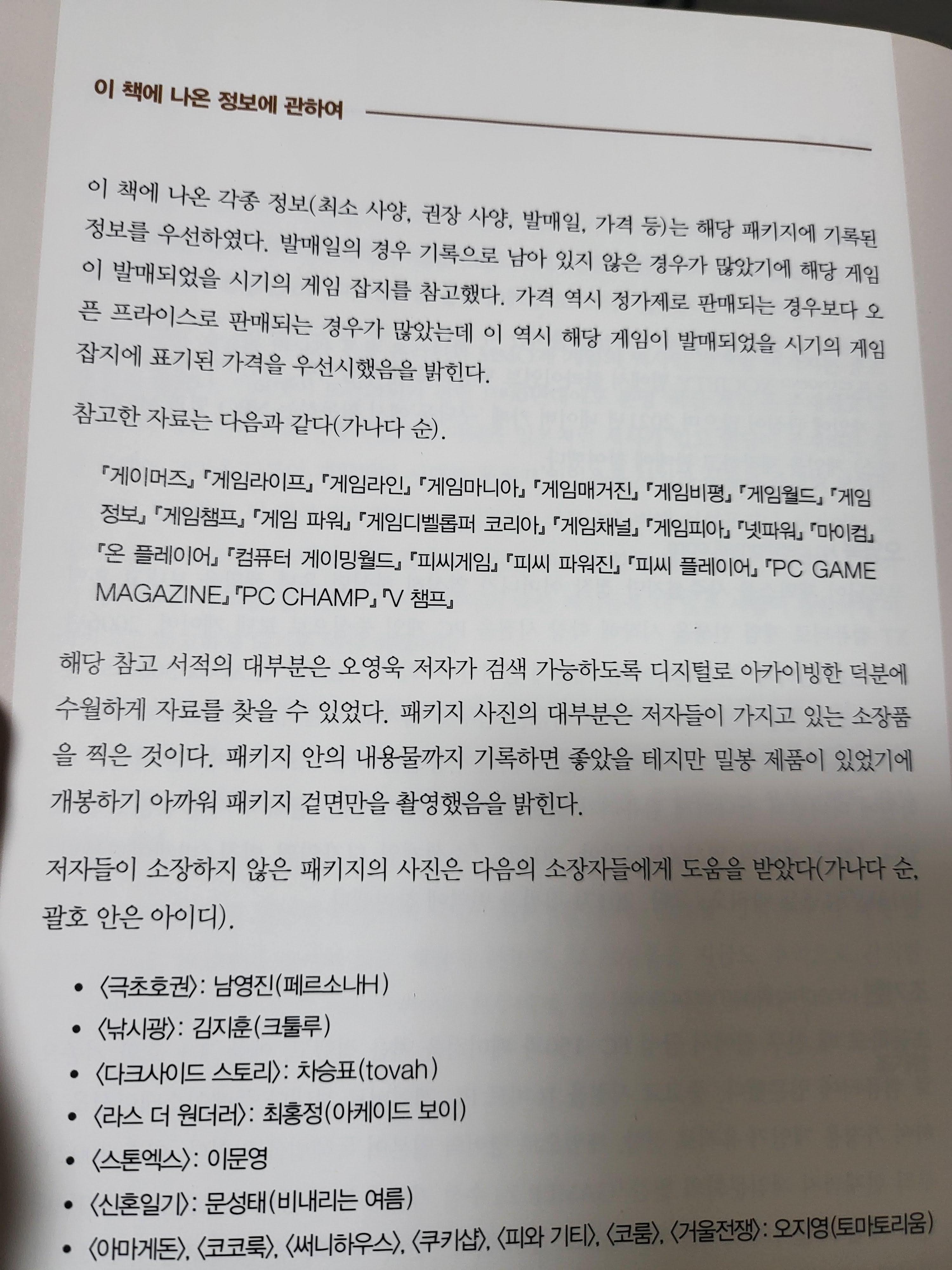 한국 게임의 역사를 이 책 한권으로 다 볼 수는 없겠지만, 최소한 굵직한 게임의 목록을 볼 수 있다는 것만으로도 설렜다.