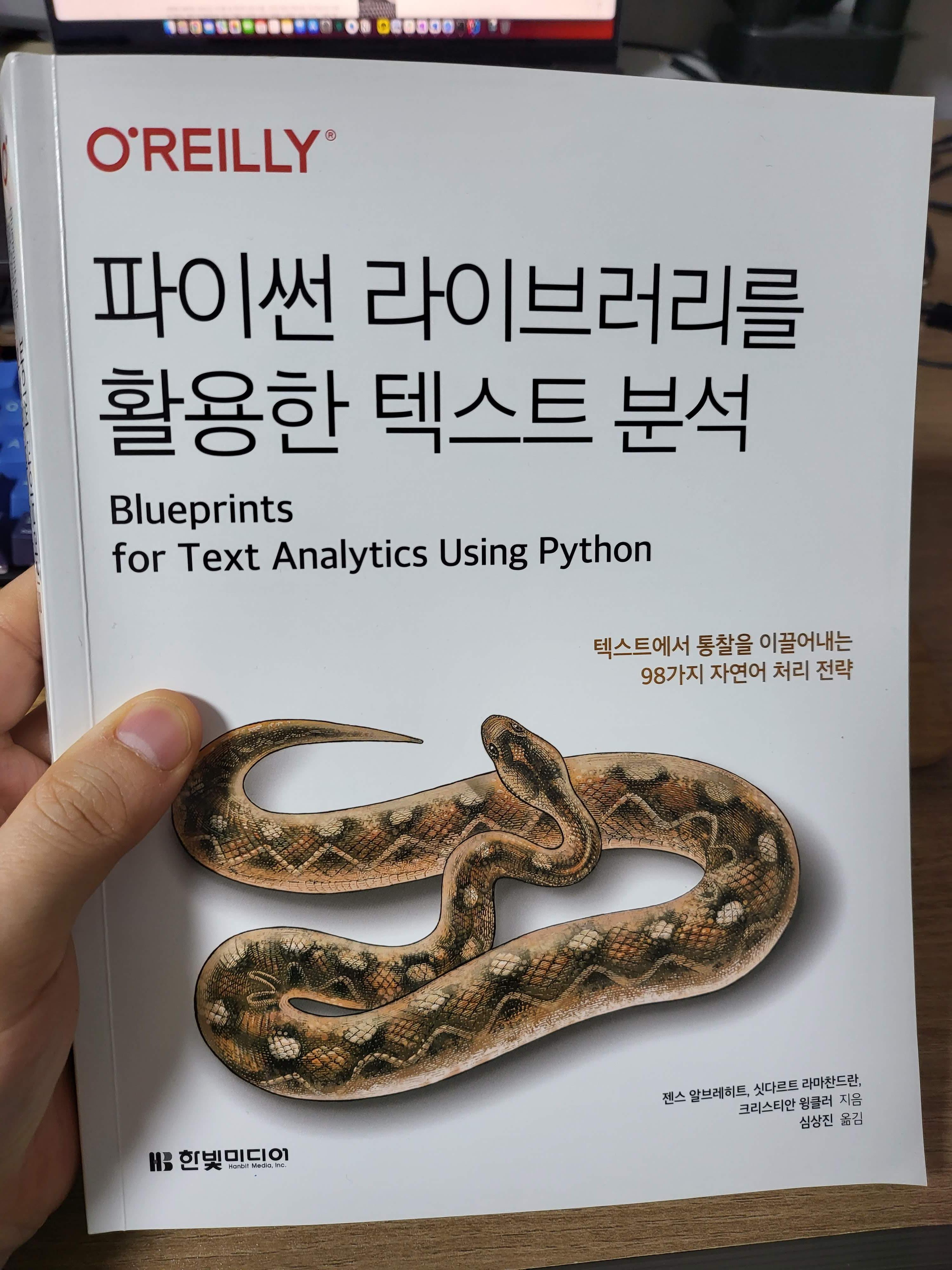 그 중 오늘 리뷰할 이 책은 텍스트에 집중한 책이며, 텍스트 분석을 요리조리 진행하는 데 파이썬이 일조하는 것을 보여주고 있다.
