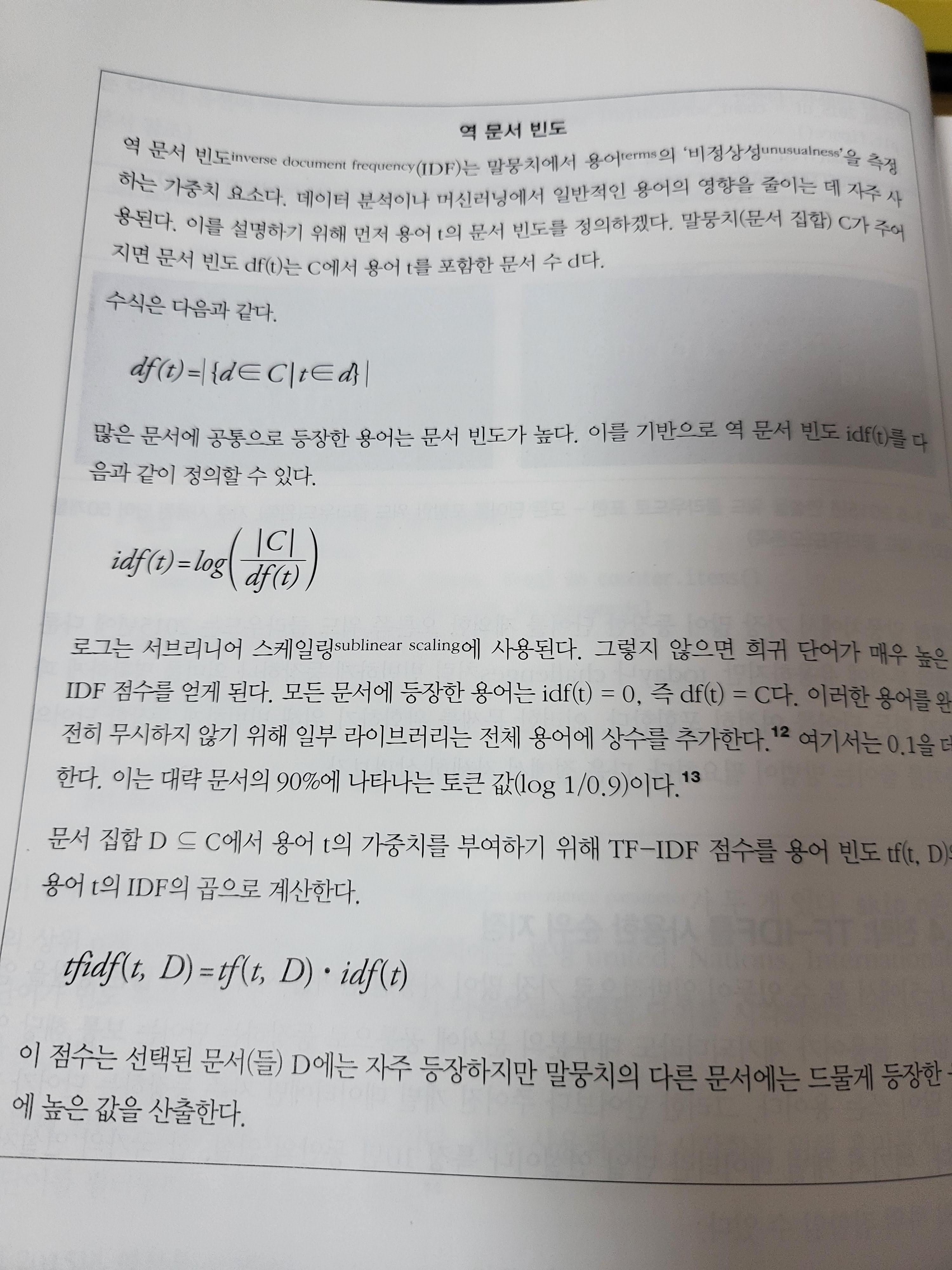 다행히도 실습 위주의 내용이 대부분이었으며, 이 경우에는 빈도수에 대한 특별하게 이해를 돕기 위한 수식을 잠시 인용한 정도로 보면 될 것 같다. 그래서 나처럼 수식에 약한 사람이라 할지라도 이런 부분은 가볍게 보고 지나가면 될 것 같다.