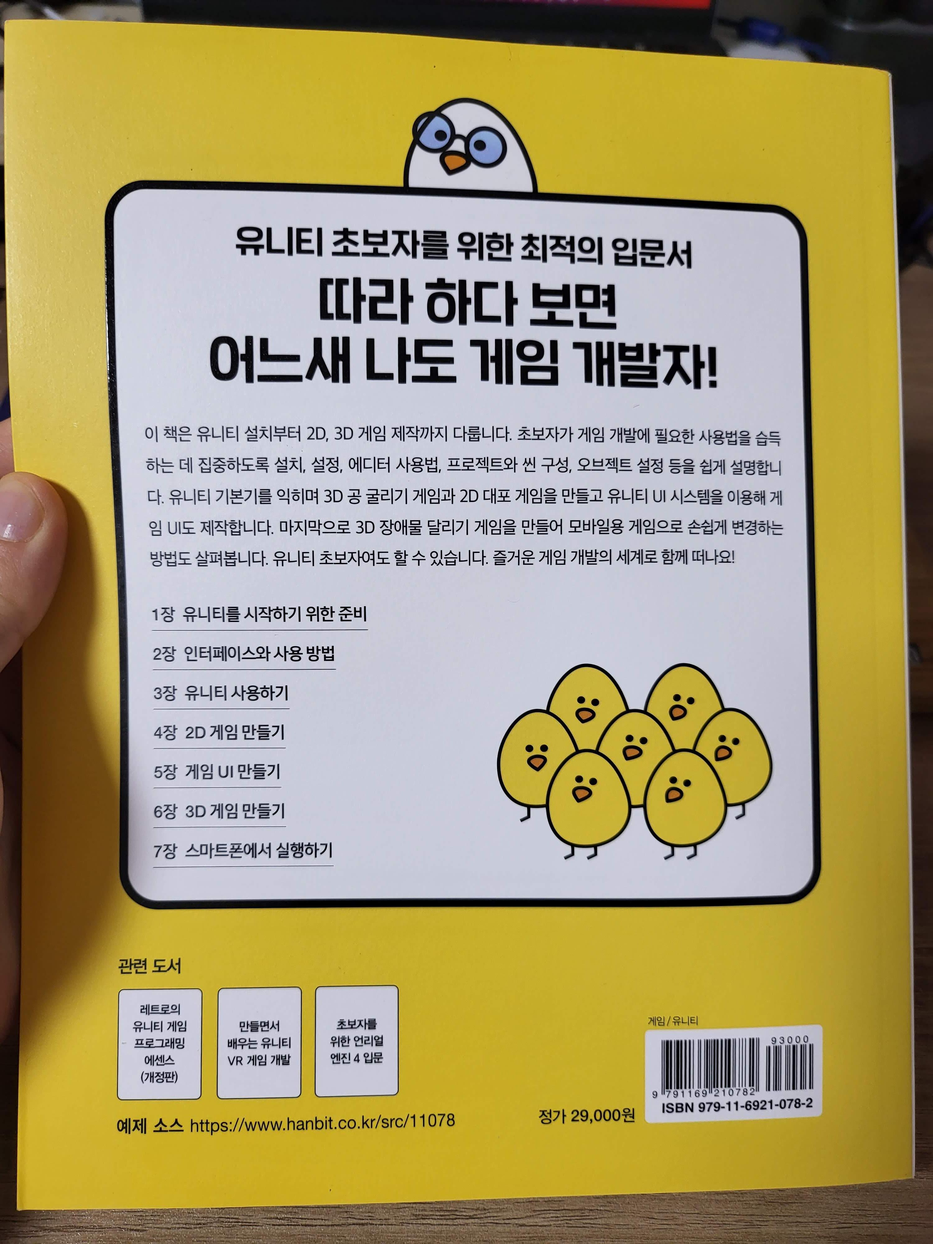 이 책에서 관련도서로 나와있는 레트로의 유니티 게임 프로그래밍 에센스 책은 상당히 두껍다. 그래서 이 책을 입문용으로 접했다면, 좋은 선택이며, 이 후 로드맵으로 해당 책도 괜찮다고 생각을 했다. 또한 잘 나온 뒷면의 챕터 제목 나열을 보며 이 책의 아웃라인이 그려질 것이라고 생각한다.