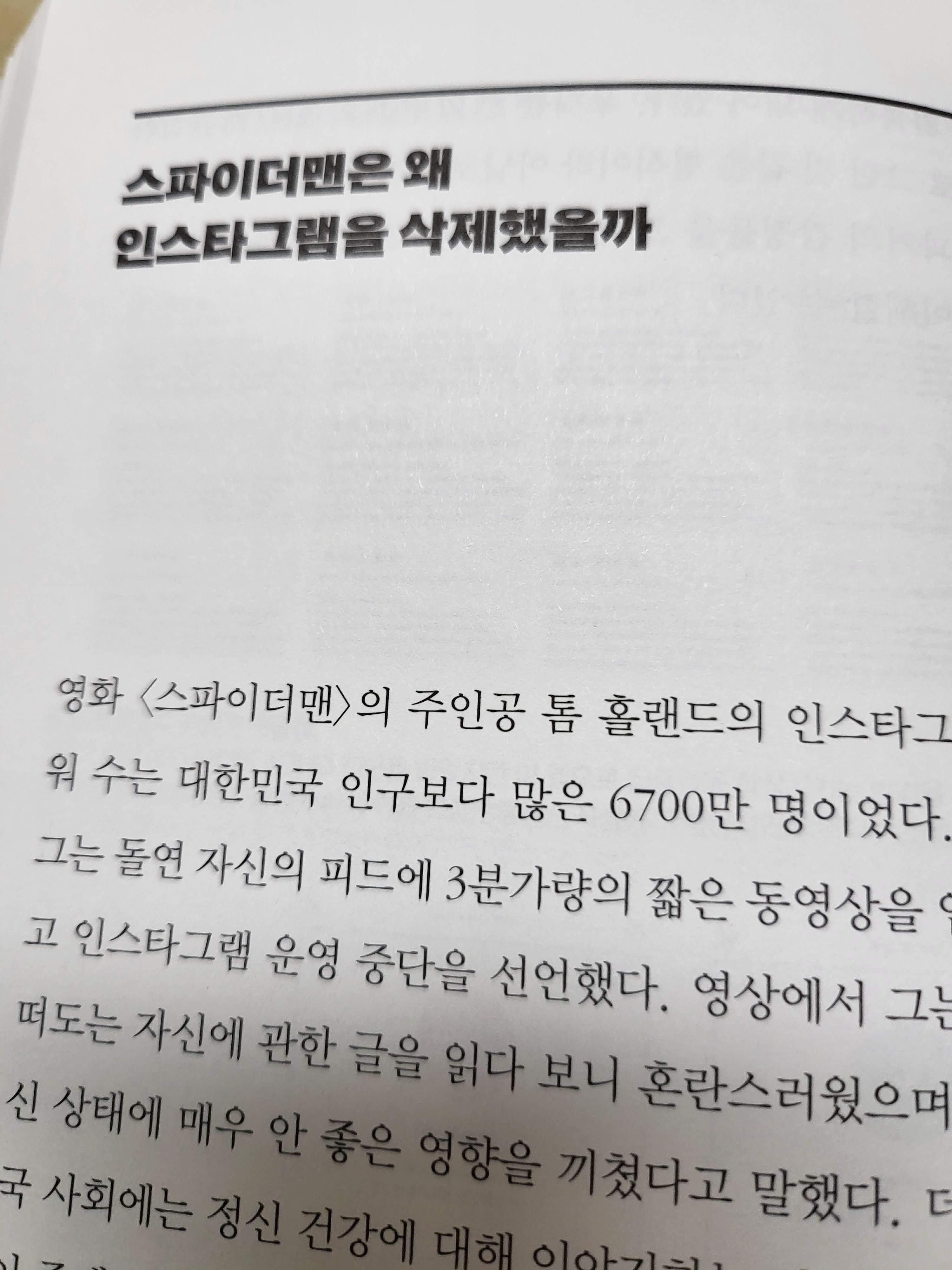 '톰 홀랜드'가 인스타그램 운영을 중단한다는. 사실 이 부분은 아직 잘 이해가 가지 않는다.