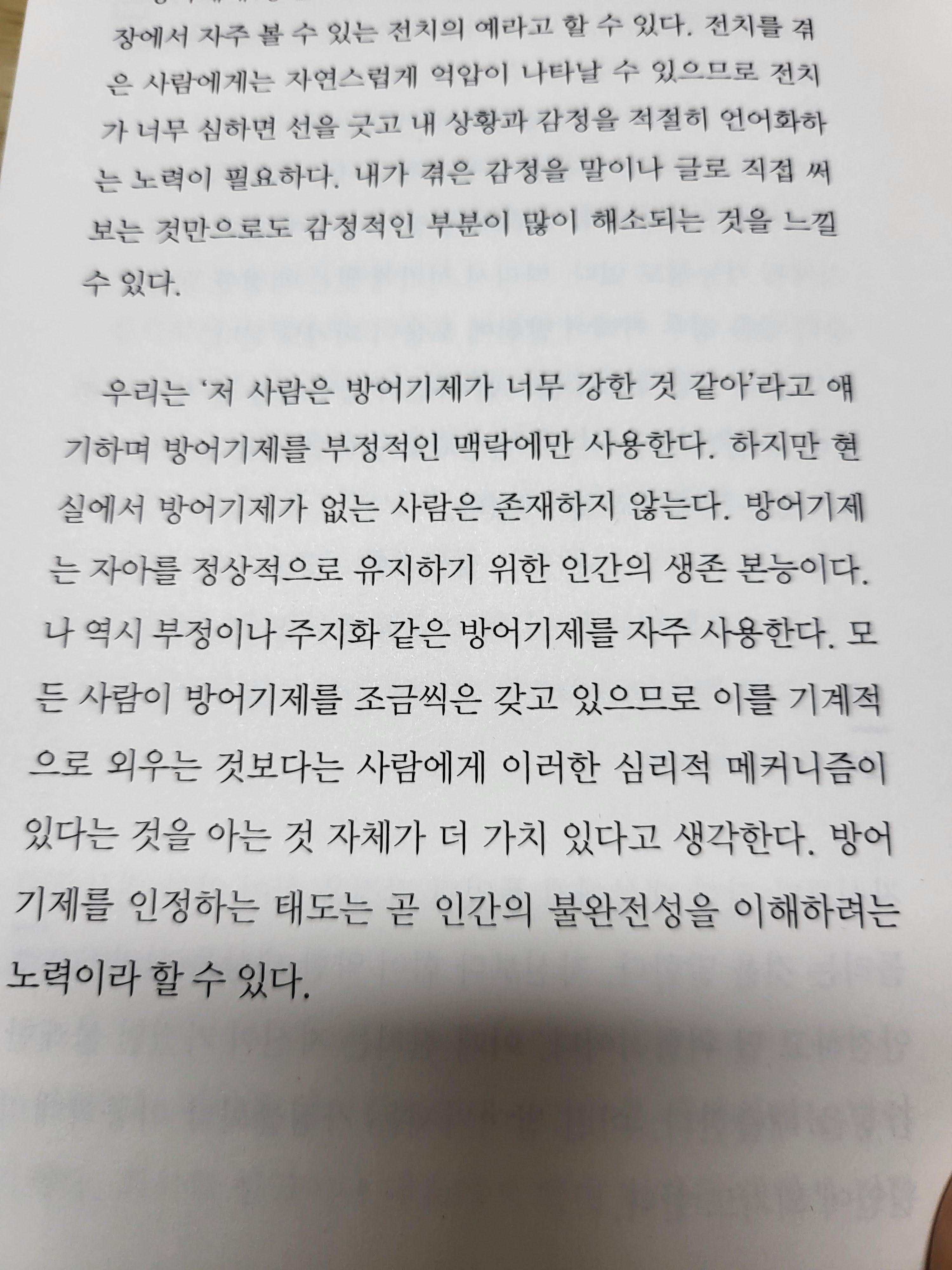 이 책의 거의 뒷부분에 방어기제에 대한 말이 나온다.