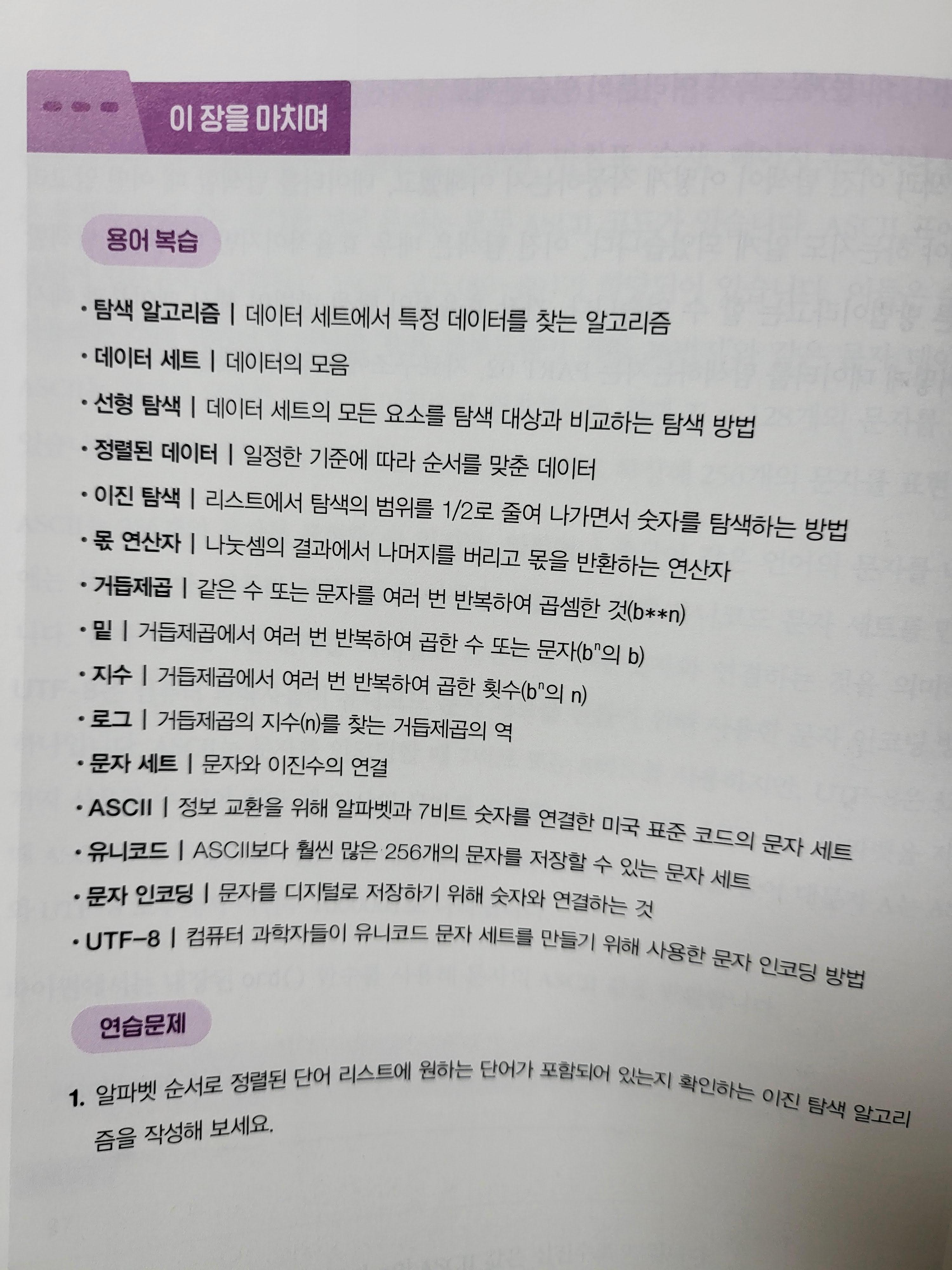 인상적인 부분 중 하나였는데, 각 장을 마칠 때마다 그 장에서 사용한 용어를 다시 잘 요약해두었다.