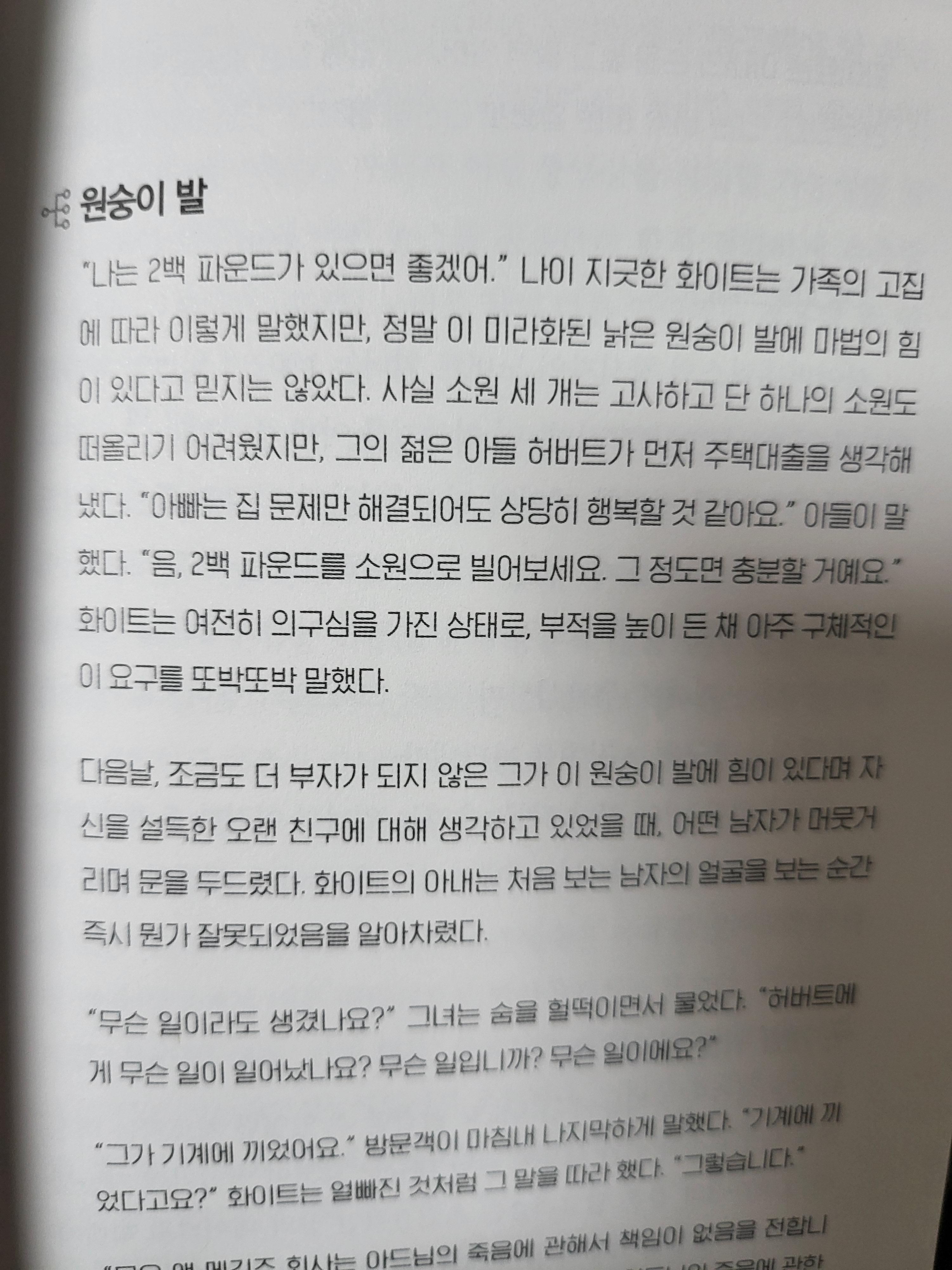 영국 작가 윌리엄 위마크 제이콥스의 아주 짧은 소설인 '원숭이 발'의 앞부분이다.