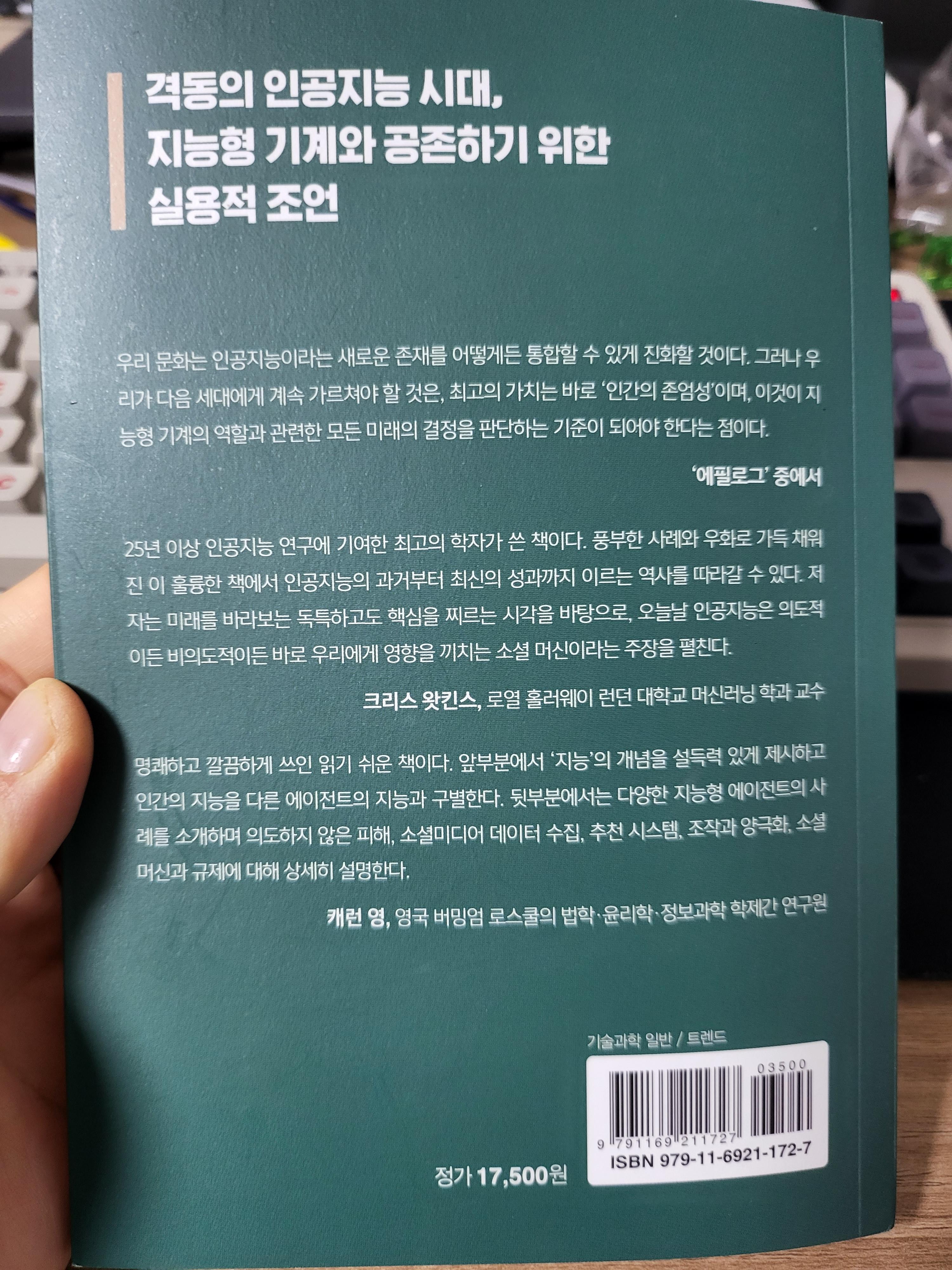 인공지능에 대해 고찰을 하게 하는 책인만큼 그에 대한 추천사가 전부이다. 깔끔하다.