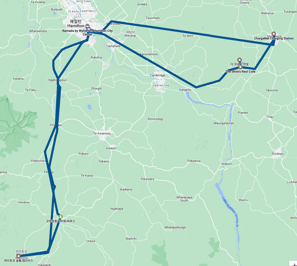 해밀턴으로 돌아오는 길에 다시 충전소를 방문했어야 했고, 마타마타의 충전소에 들러 전기를 충전했다.