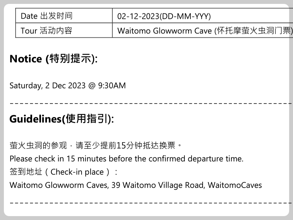 와이토모 케이브스는 trip.com을 이용하여 예약하였다.