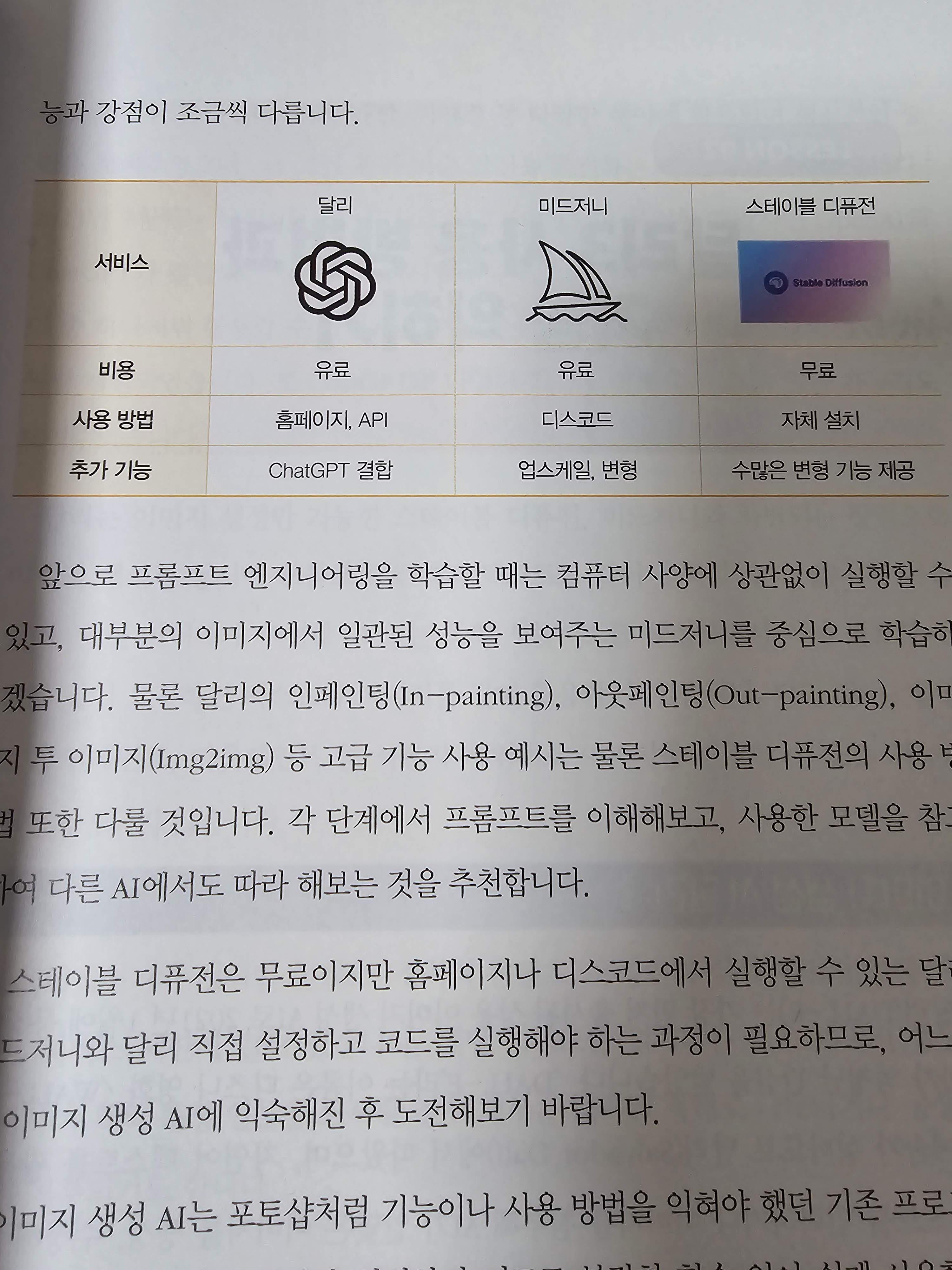 이 책은 이미지 생성 AI에 대해 잘 모르지만 그래도 잘 알려진 서비스를 통해 진입하게 하려는 느낌을 주었다.