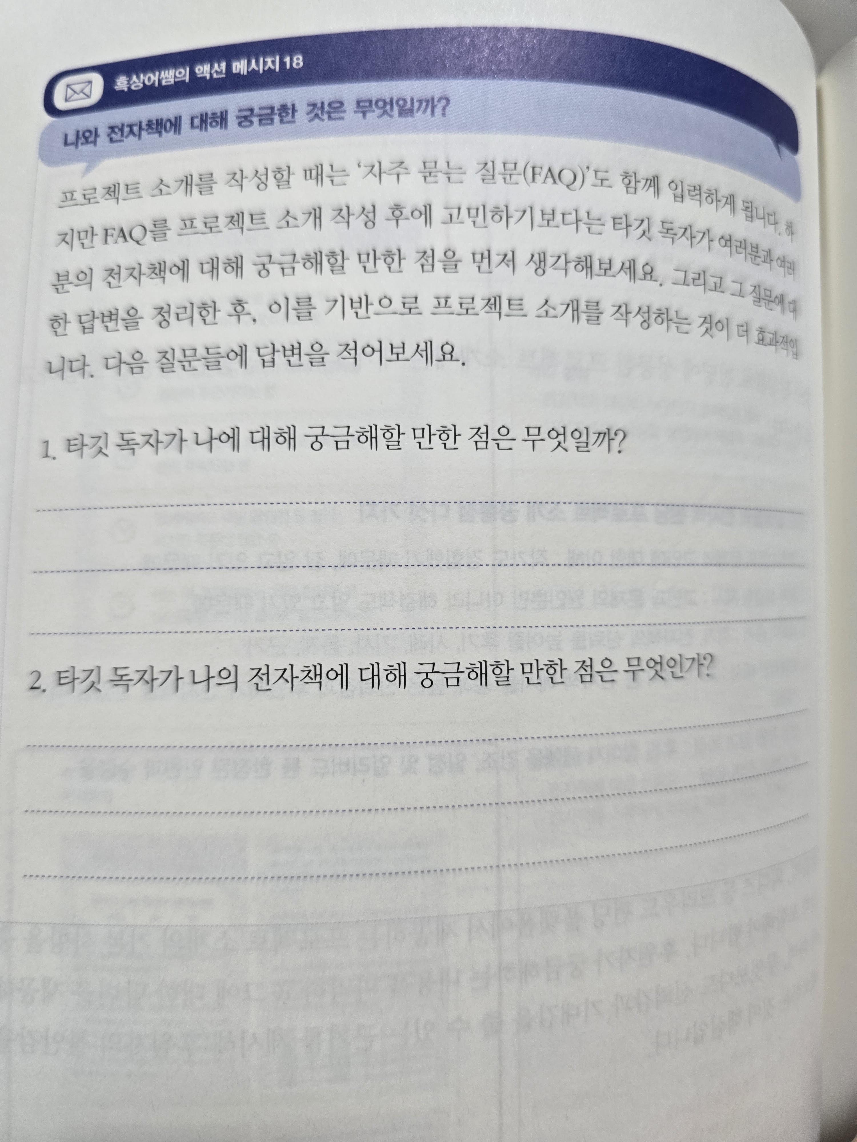 액션 메시지 곳곳에는 한번씩 생각해볼 수 있는 공간도 마련되어 있다.