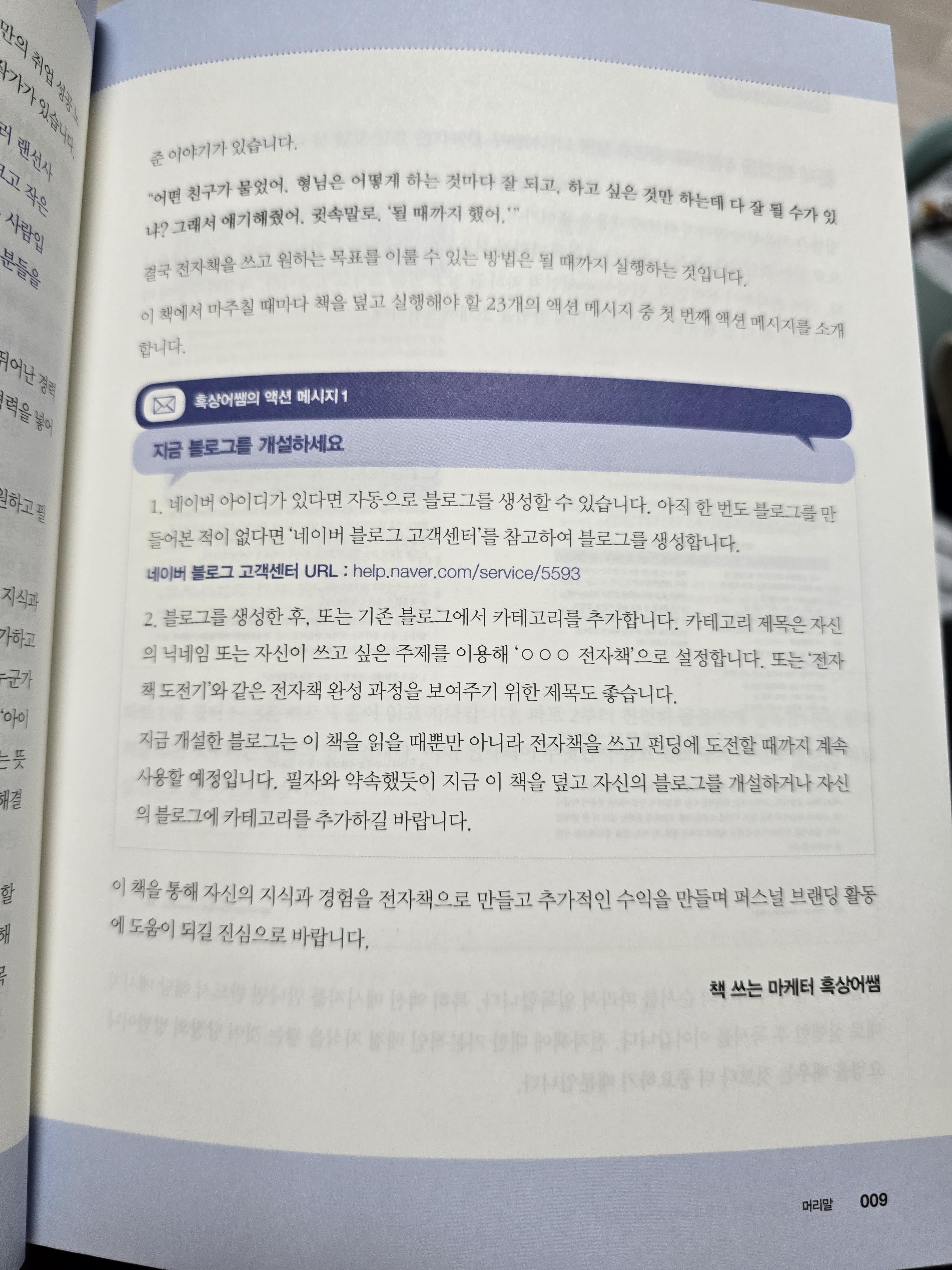 그렇지만 언젠가는 개인의 지식이나 생각을 정리한 책을 내고 싶다는 생각을 하고 있었고, 그것에 대해서는 종이책 형태로만 생각해왔었는데, 이 책이 나에게 시야를 넓여주었다. 전자책이라는 분야도 무시할 수 없는 큰 시장이고, 이 역시 출판의 한 형태라는 것을 인정한다면 오히려 좀 더 현실적으로 이룰 수 있는 방법이 아닌가 하는 생각이 들었기 때문이다.
