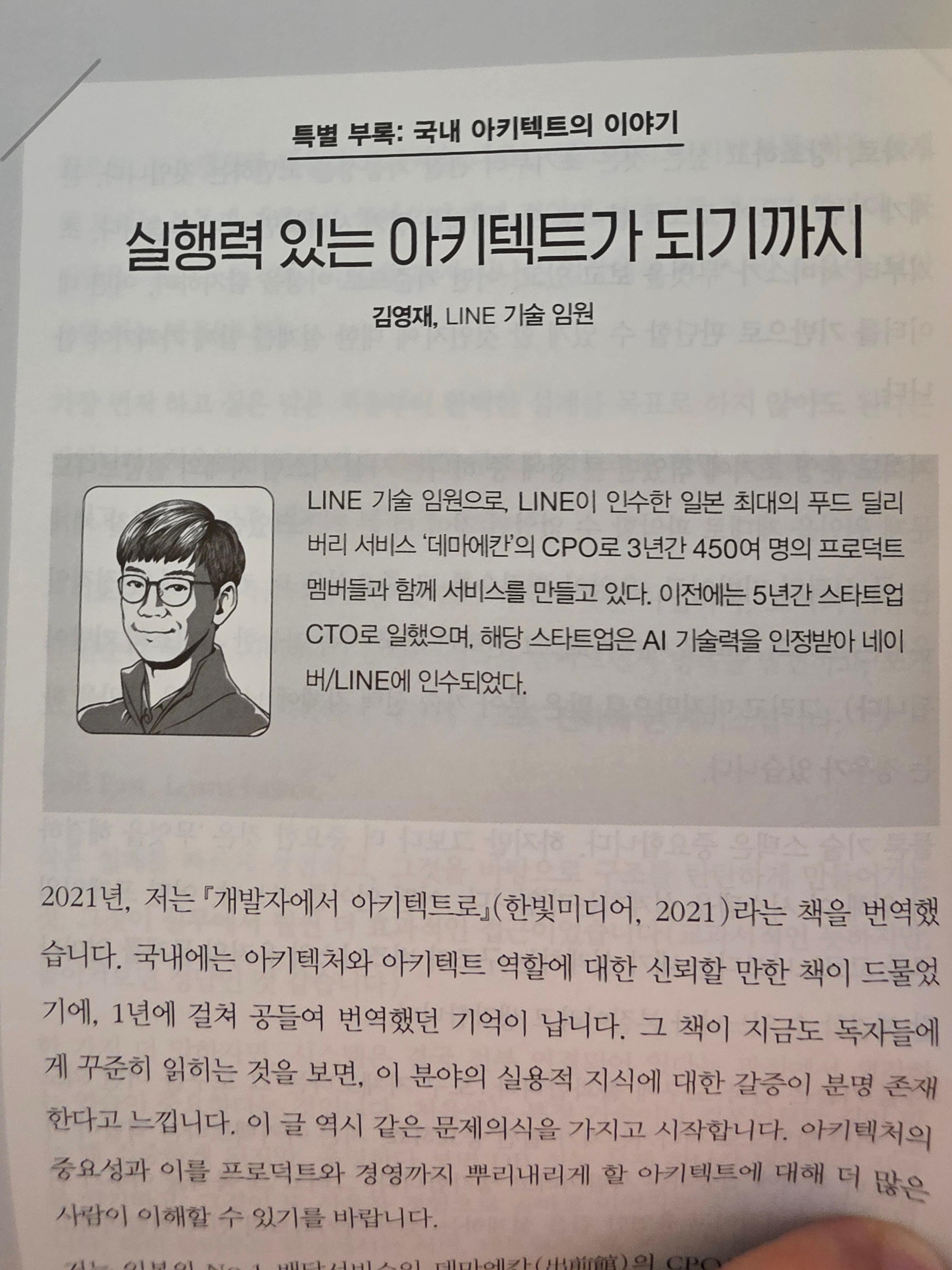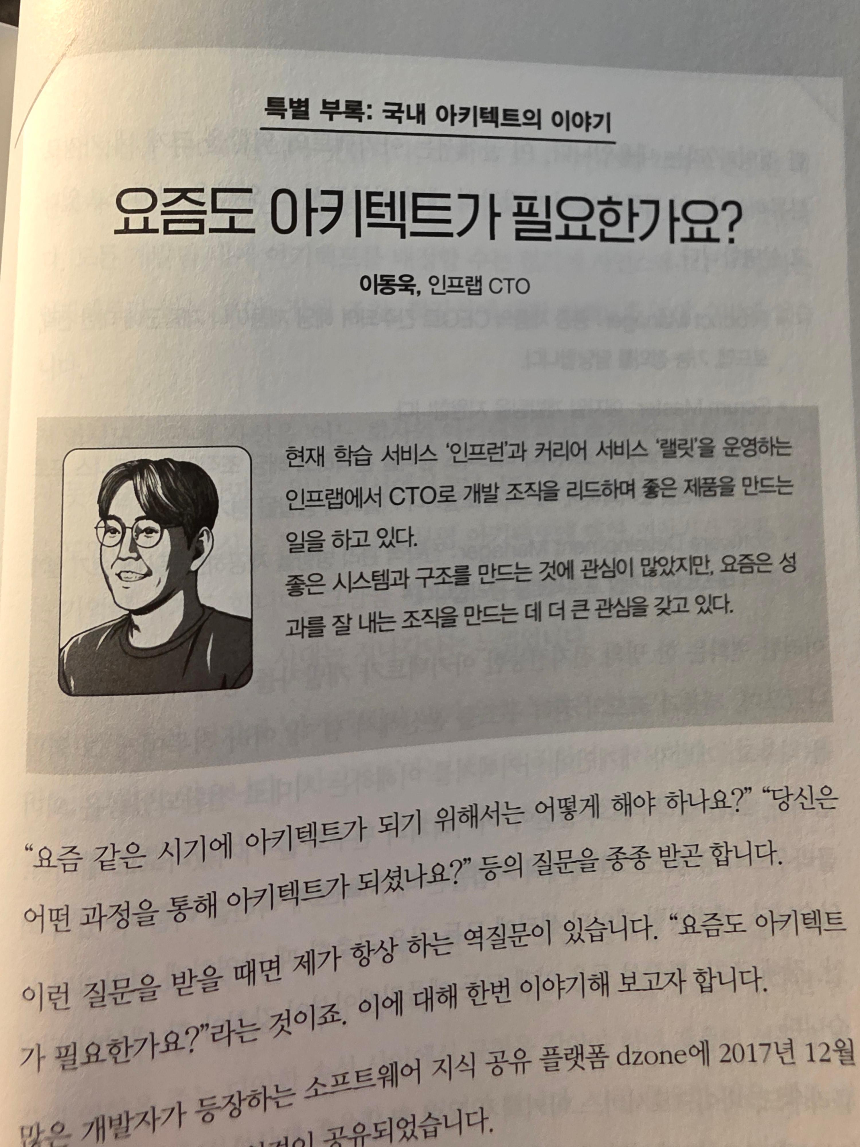 번역된 부분 외에도 몇 분의 케이스를 실어서 아키텍트에 대한 이야기를 담아놓았다. 이들의 이야기를 들으니 아키텍트의 필요성과 방향에 대해 생각해보게 된다.
