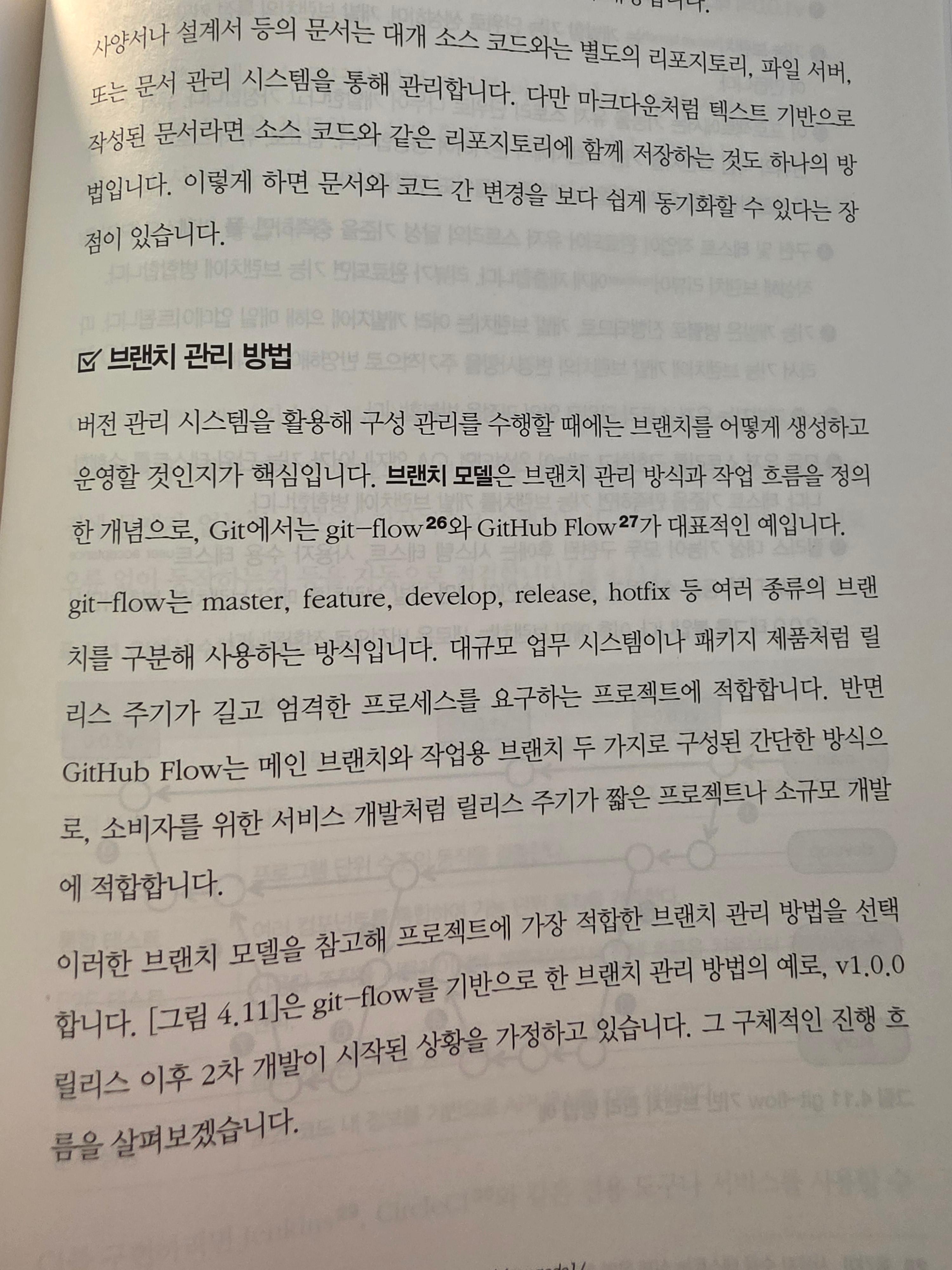 그리고 GIT의 브랜치를 관리하기 위한 방법을 아주 간단하게 서술하고 있다. 사실 브랜치 관리에 대해서는 내용이 훨씬 많이 필요하다고 생각하지만 어느정도 토픽을 제안한다는 것으로 이해했다. 회사 프로젝트 관리시 git-flow로 오랫동안 관리했었는데, 최근 gerrit으로 관리하면서 어떤 방법이 좋을지 명확하게 정리되지는 않았다. 이런 부분들에 대한 고민도 아키텍트의 몫이니 놓칠 수 없다.