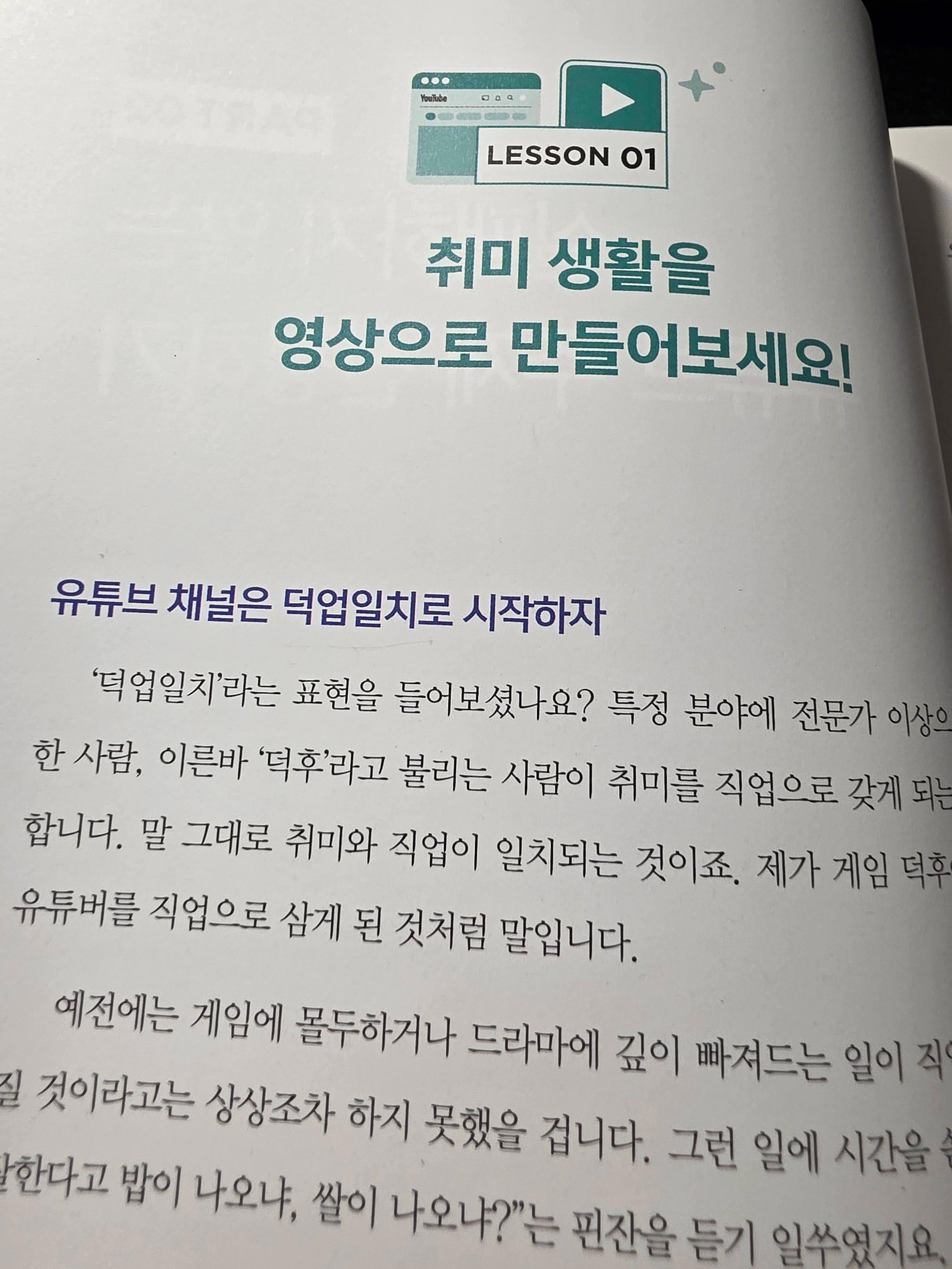 그리고 이 부분을 생각하면서 저자가 언급하기로는 덕업일치가 중요하다고 하였다. 매우 공감이 갔다. 사실 취미도 일로 하면 피곤하고 힘들다고는 하는데, 그래도 취미니까 할 수 있다. 그런데, 취미도 아니고 오로지 돈벌기 위한 일로만 내가 관심없는 분야에 뛰어든다면 얼마나 지치고 힘들까. 그만두기도 쉽지 않을까. 내 채널의 영상을 보러 오는 사람들도 그 분야의 관심자들일텐데 제작자가 관심이 없다면 공감도 못하지 않을까. 그래서 중요한 부분을 잘 짚었다고 생각한다.