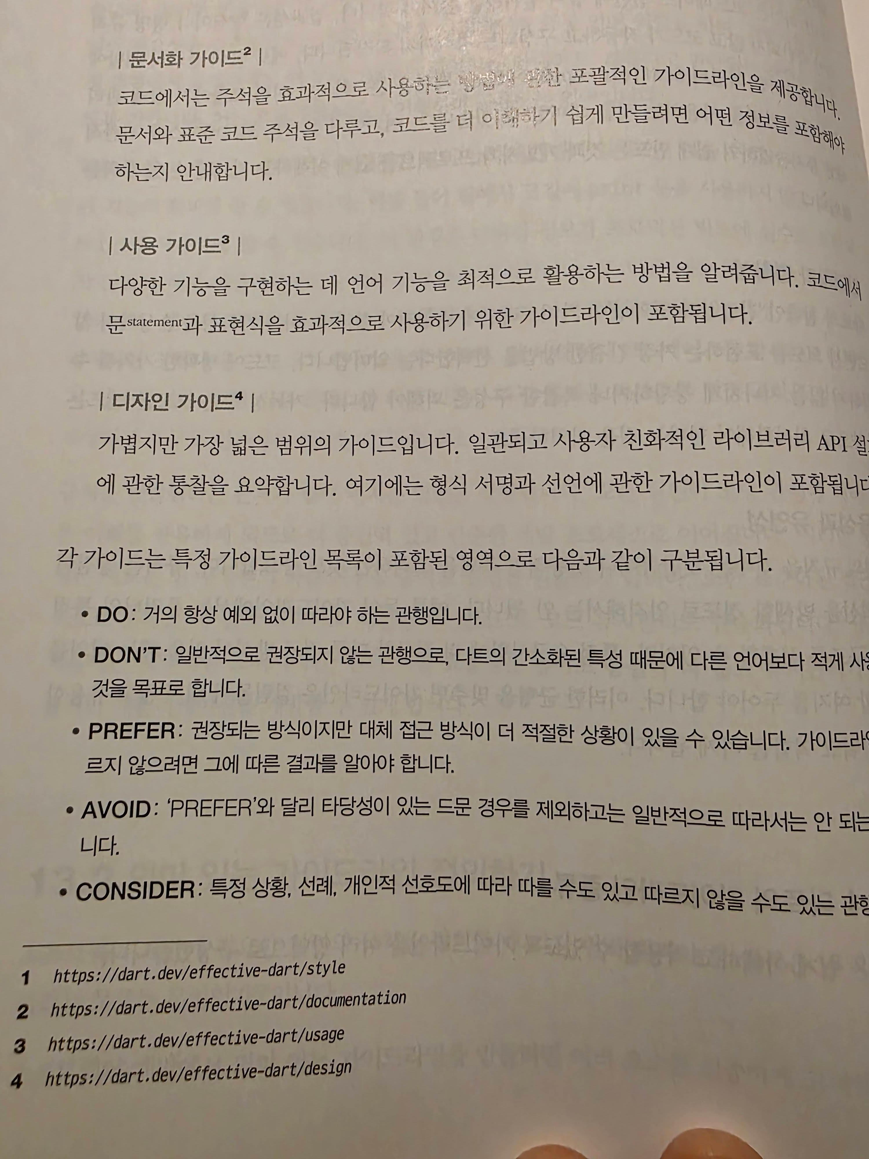 그리고 컨벤션 문서를 작성할 때의 원칙도 언급하고 있다. DO, DON'T, PREFER, AVOID, CONSIDER로 나뉜 단계로 인해 좀 더 말하고 있는 무게감의 차이를 알 수 있다는 것이 좋았다. WIKI에 문서를 작성할 때 저런 라벨을 만들어서 표현하면 읽기 편하겠다는 생각은 비단 플러터만의 이야기는 아닐 것이다.