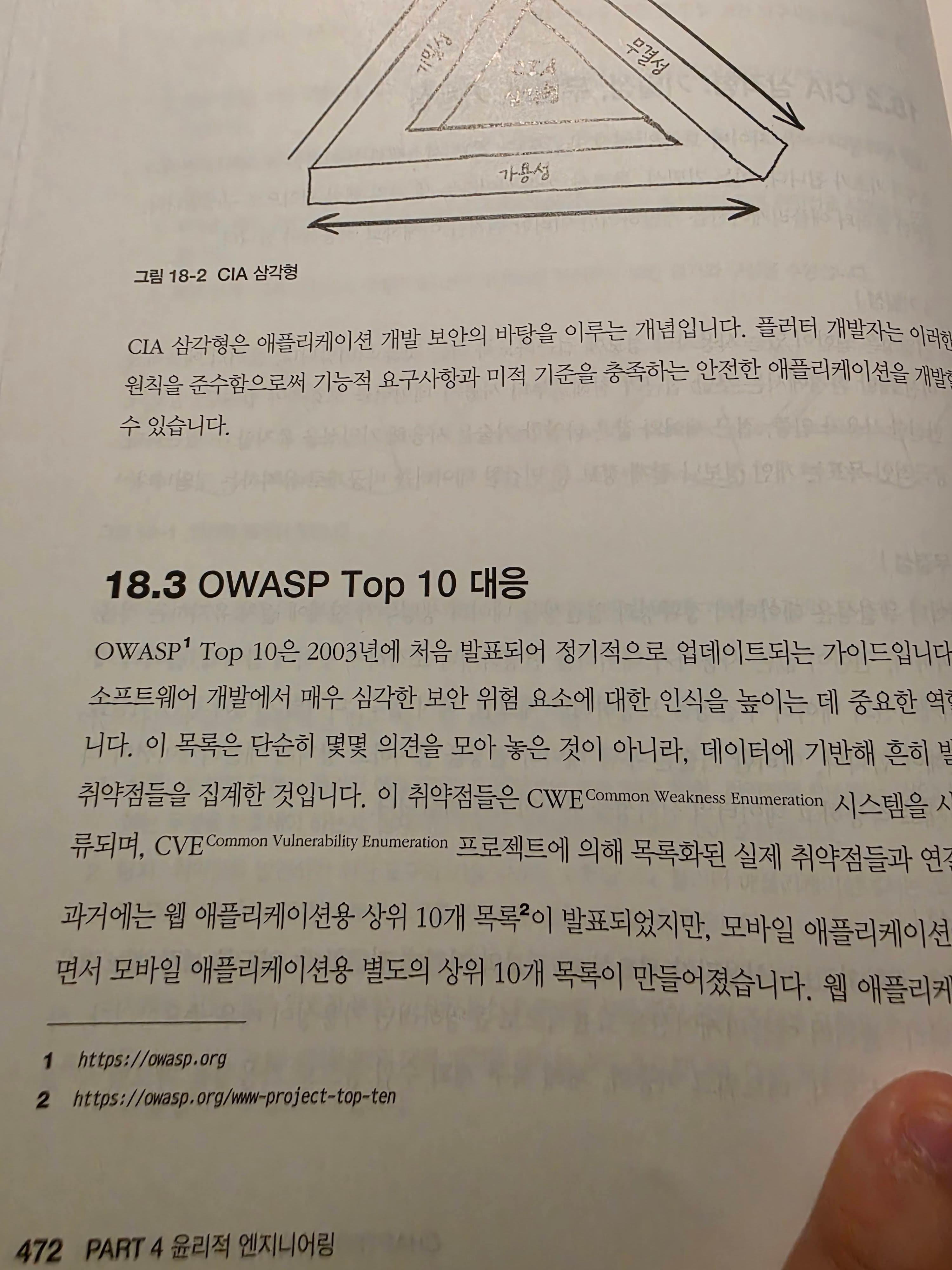 OWASP는 보안에 대한 이야기이다. 윤리적인 관점에서 엔지니어링을 한다는 것은 결국 보안을 얼마나 잘 챙기냐는 이야기도 해당이 되기 때문인데, 이미 잘 정리되어 있는 취약점들이 존재한다. 좋은 서비스를 만들기 원한다면 이런 것도 엔지니어링에서 빼놓을 수 없다.