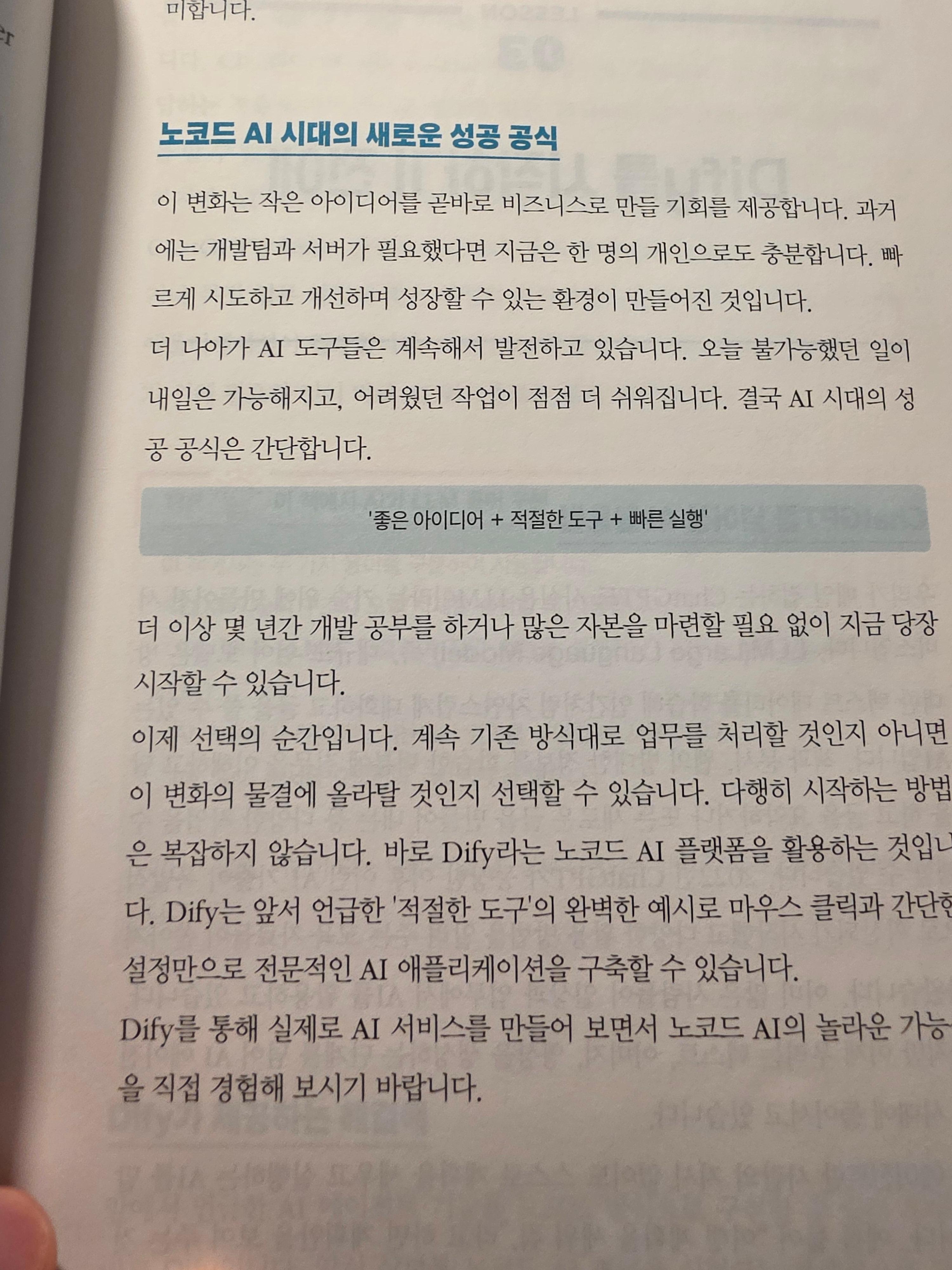 그래서 그런 노코드 AI 시대에 맞는 성공 공식을 언급하고 있다.