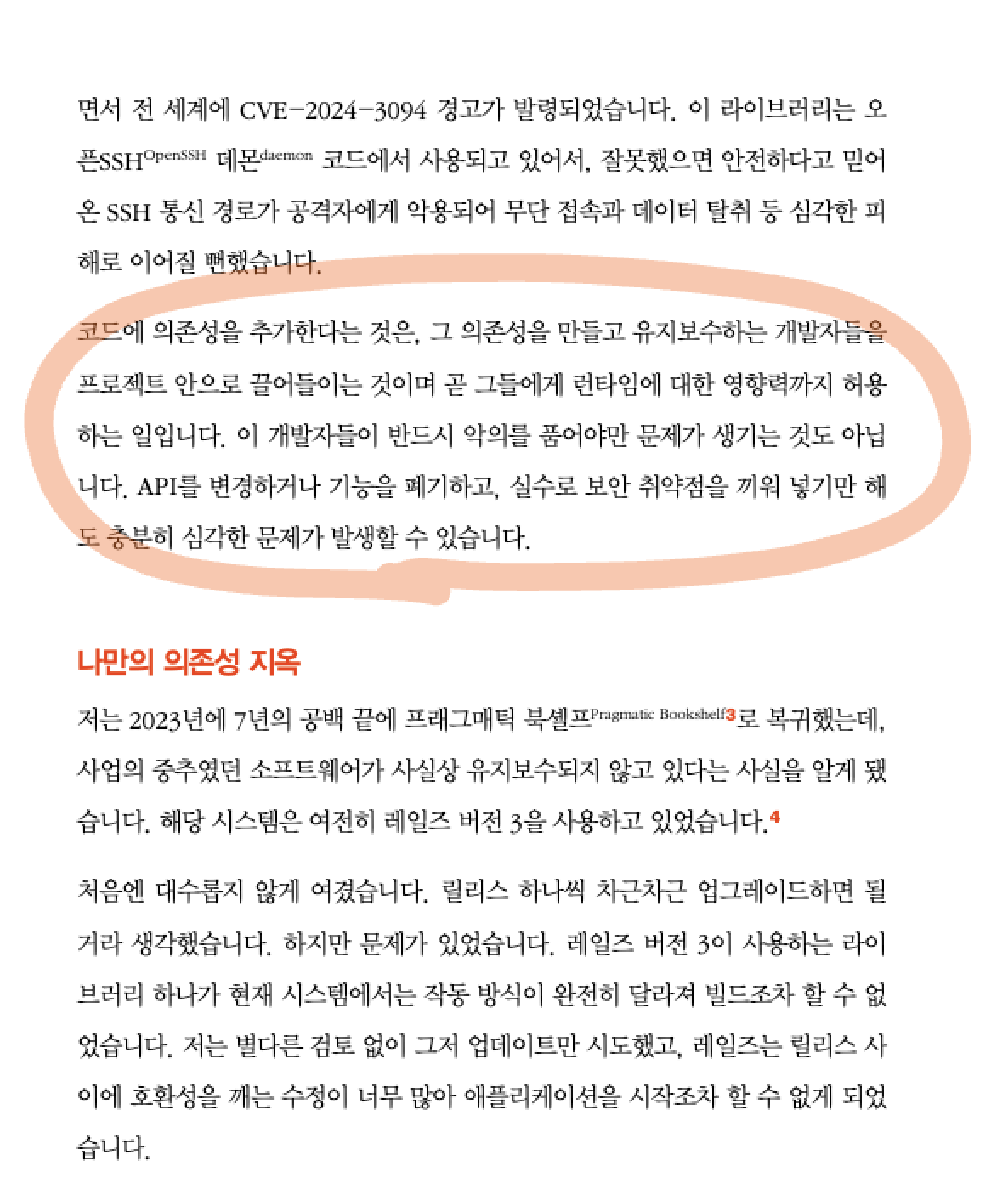 하지만, 이것은 그 부분을 뛰어넘어 이야기를 하고 있다. 마치 내 코드의 일부를 외주를 주는 것과 같은 효과를 말하는 부분 때문이다. 내 코드를 남에게 맡겨주는 것과 다름 없는 행동을 한다는 것은 결국 그것에 대한 책임을 져야 하기 때문에, 그 코드의 작동 매커니즘도 이해하고 있어야 문제가 생겨도 내가 핸들링이 가능하기 때문이다.