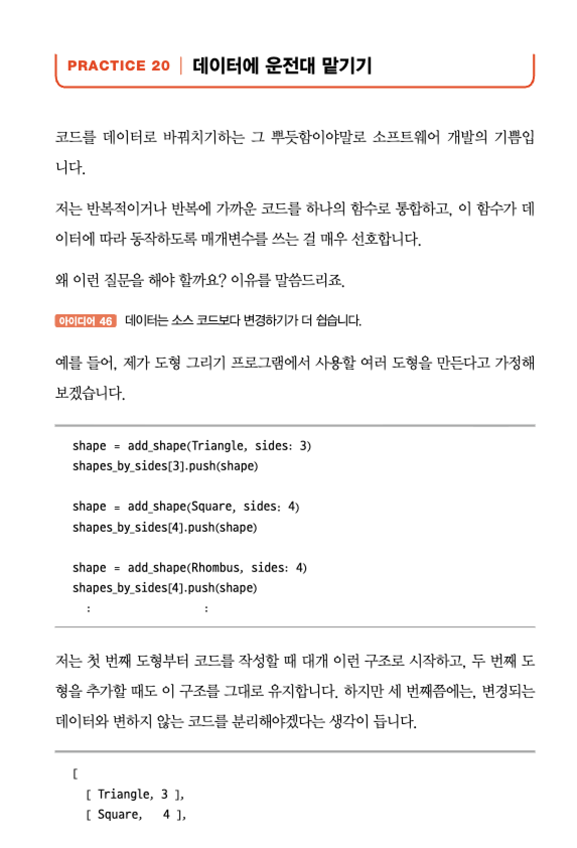 데이터를 바꾸는 것이 코드를 바꾸는 것보다 훨씬 간편하다는 점을 강조한다.