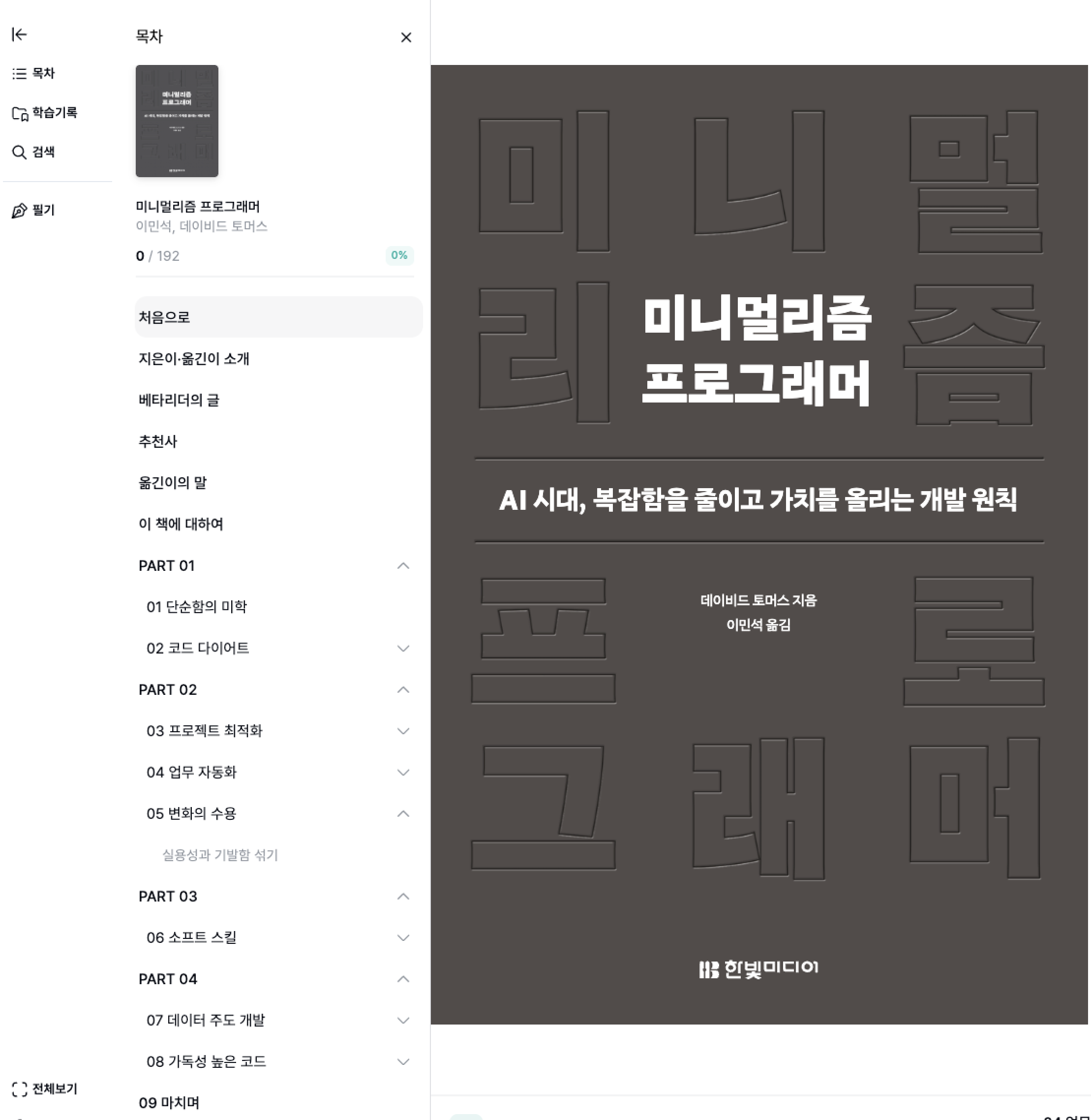 이렇듯 프로그래밍의 영역에서 어떤 방법으로 미니멀리즘을 구현해 나갈 것인지 생각해본 부분은 많기 때문에, 이것을 정리해 줄 좋은 계기가 될 것이라고 생각한 책이 나왔다.
